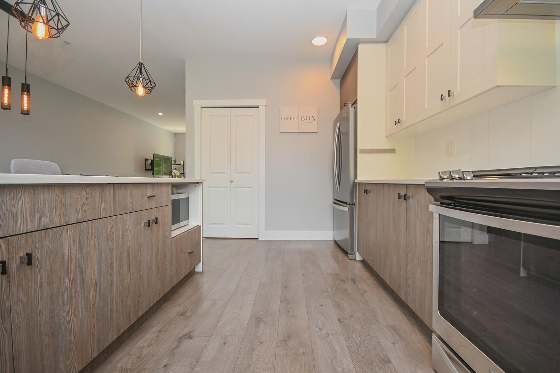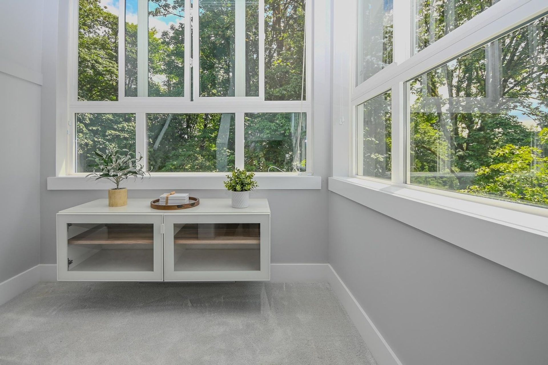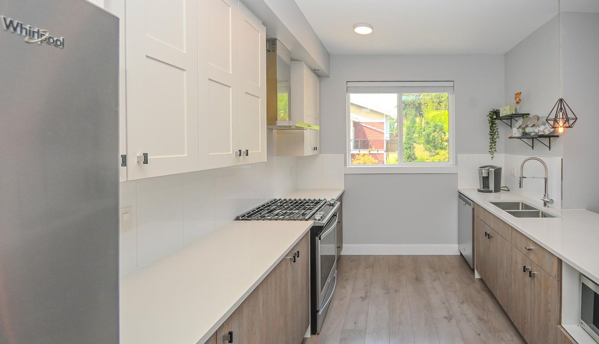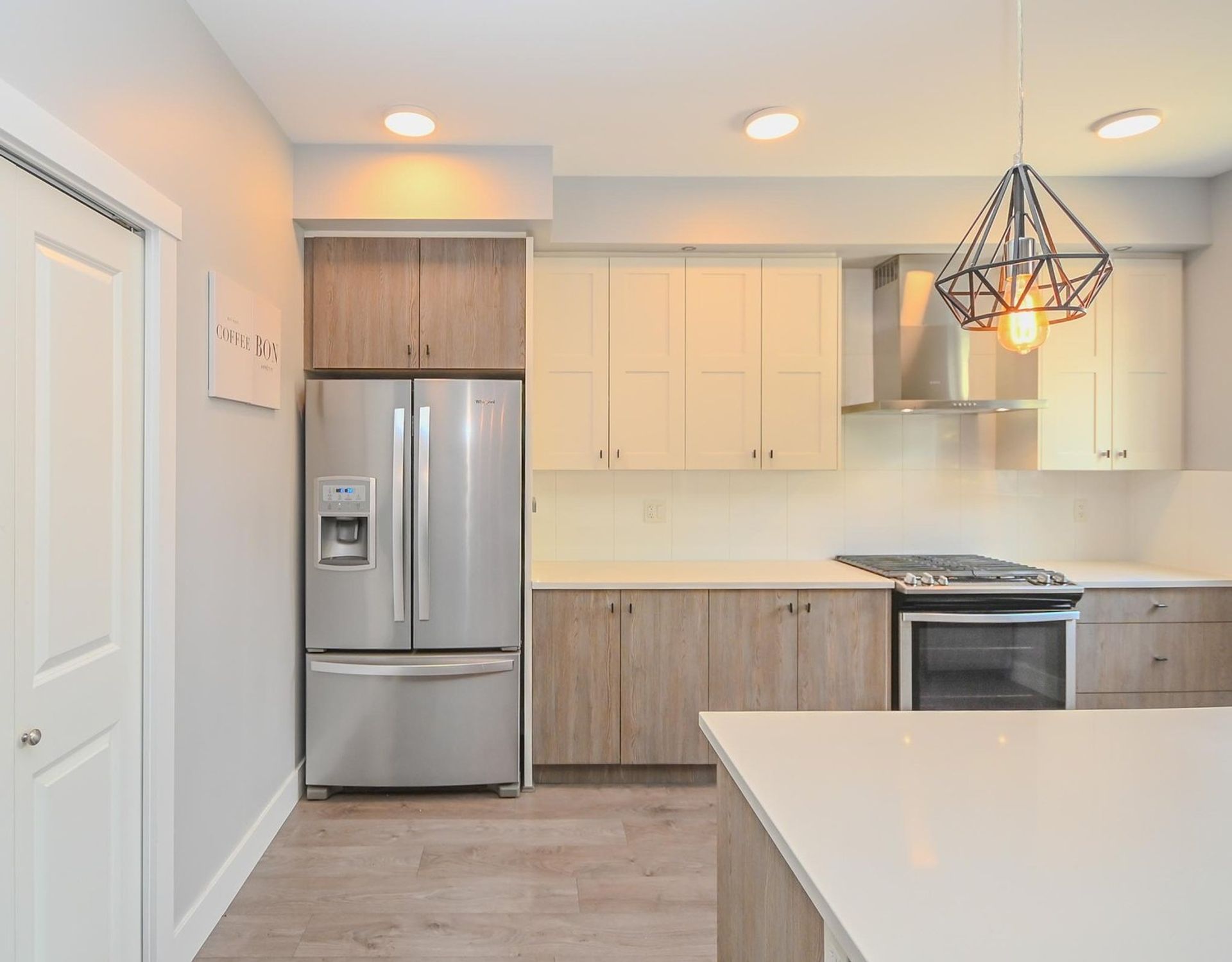Nestled in the idyllic Ridgemont development, this townhouse is sheik, bright, and elegant. Enter the home on the side of the house under a private covered entryway shrouded by greenery. The main floor is open with a kitchen, living room, dining room, and two-piece bathroom.
