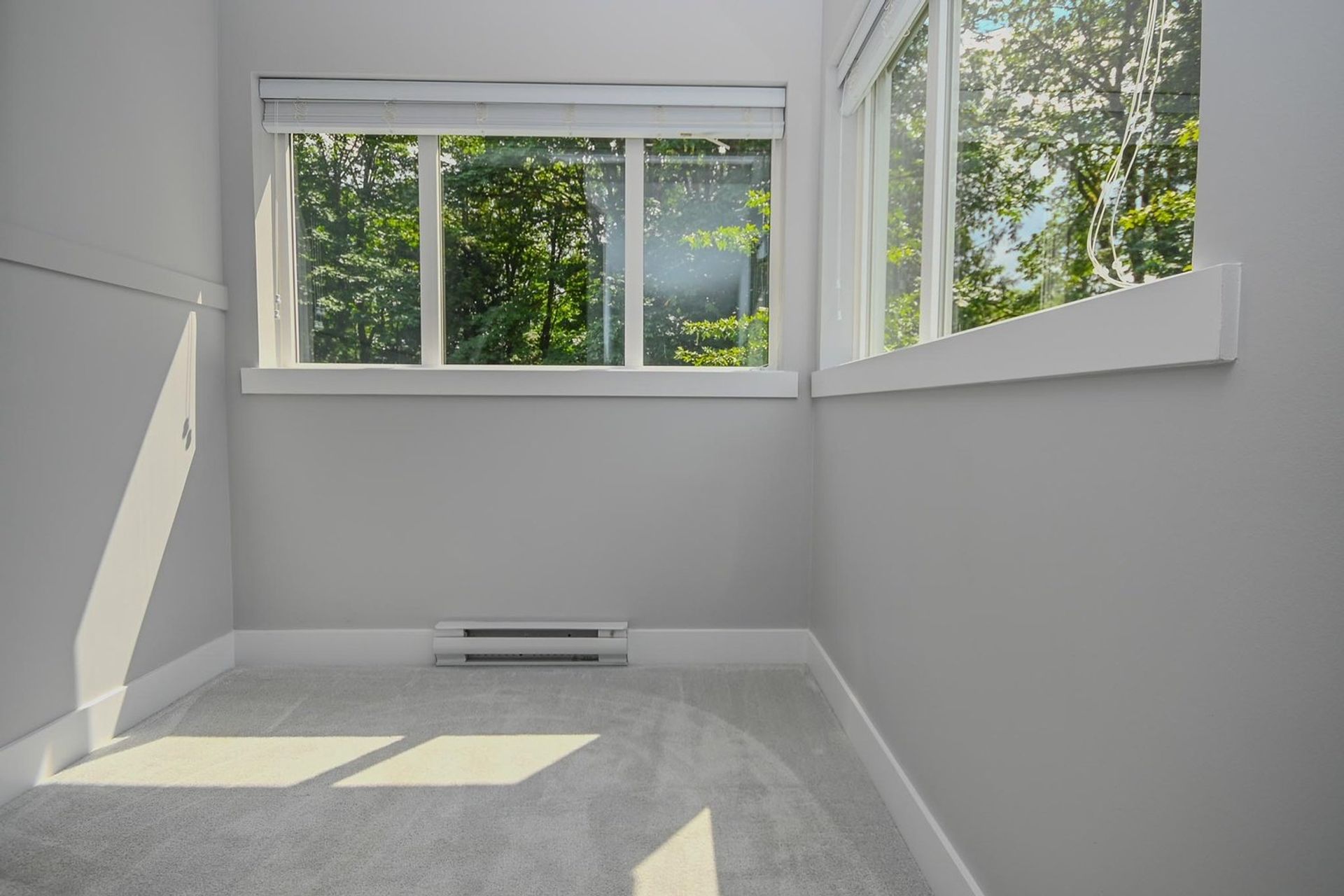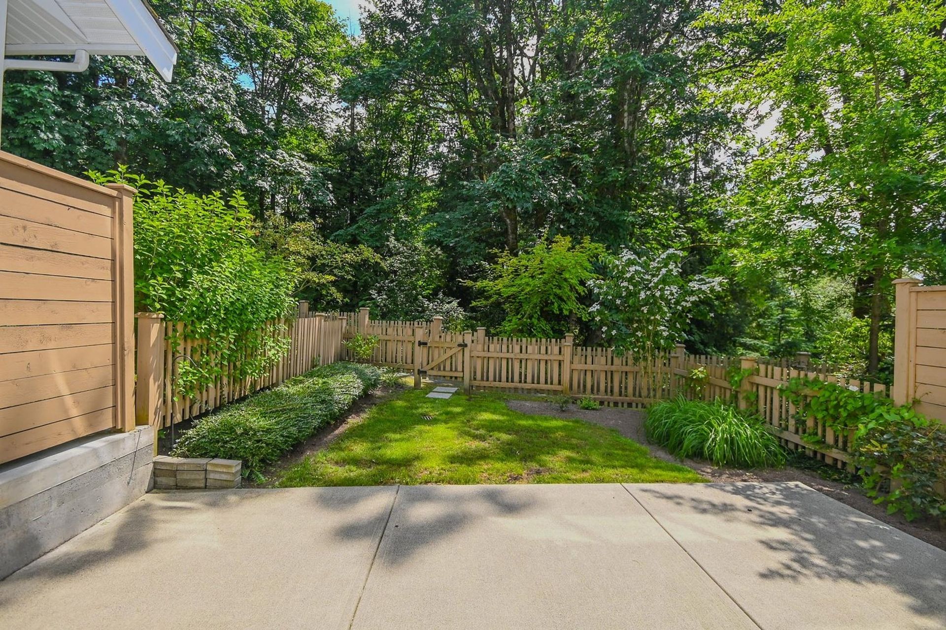 A fourth bedroom resides on the lower level; ideal for older kids, or as an office space, playroom, or hobby area. It has a sliding glass door out on to a scenic fully enclosed picket fence yard. There is a substantial 179 square foot patio backdropped by a rejuvenating greenbelt with direct access to a trail.