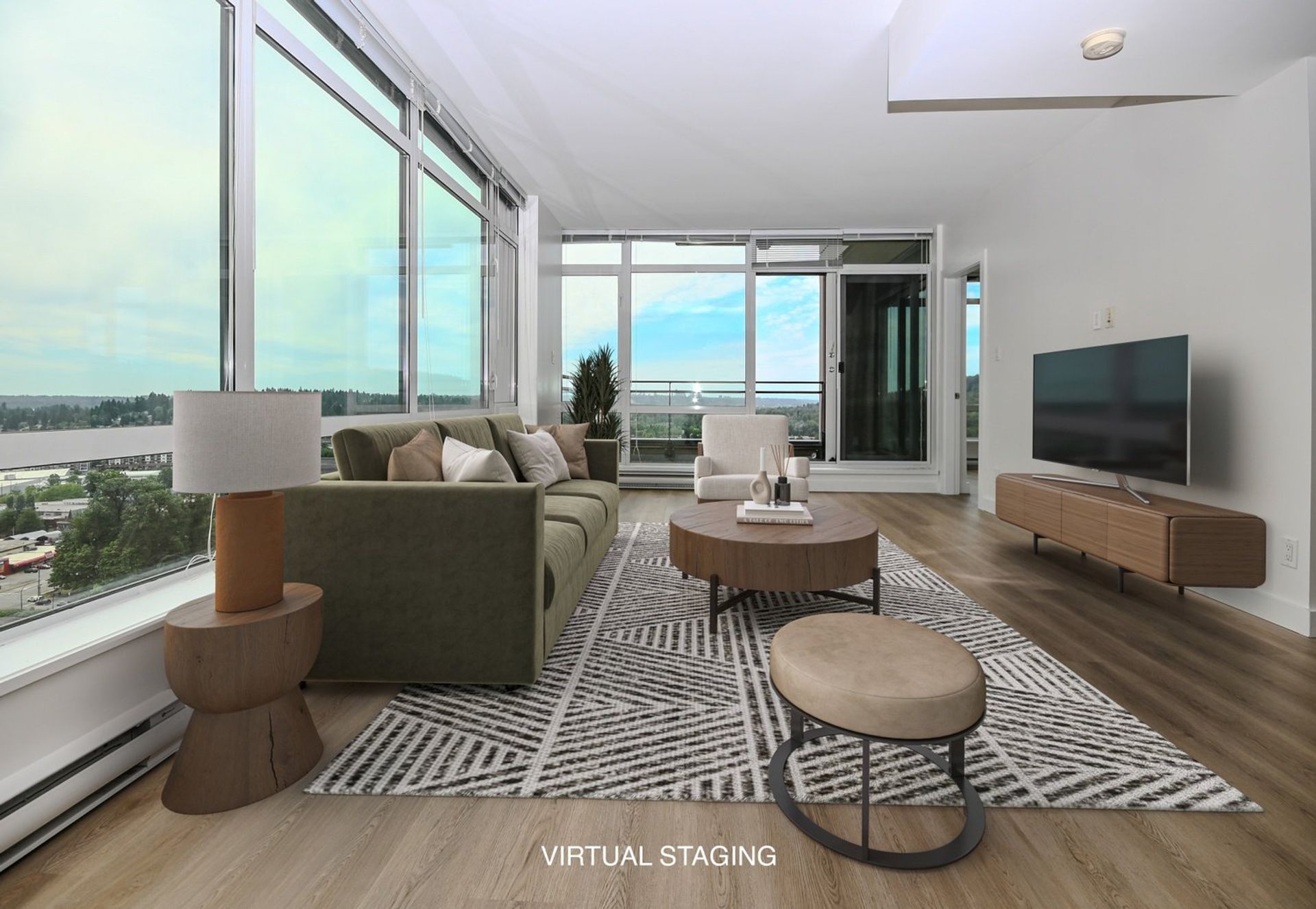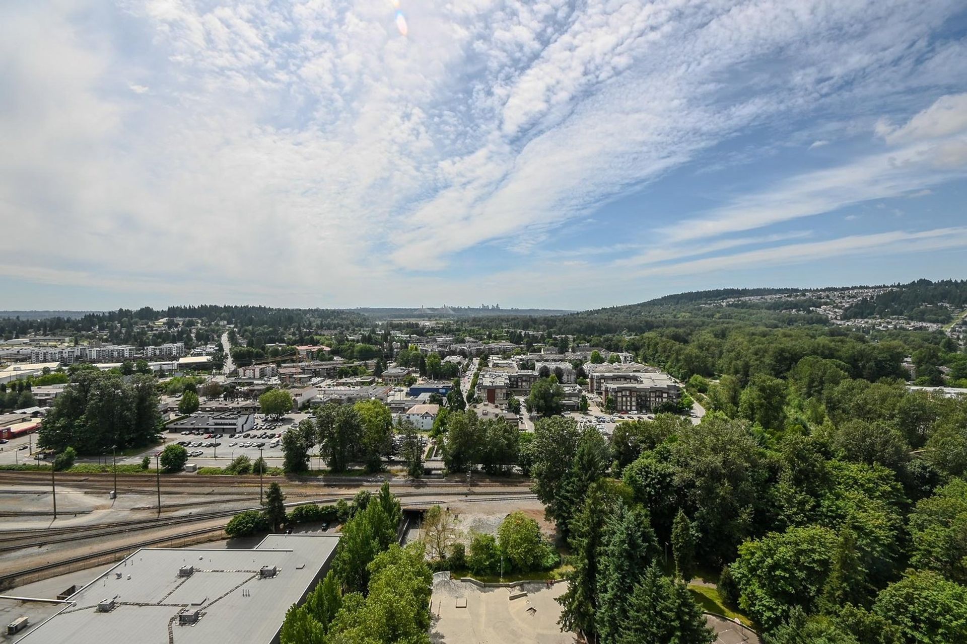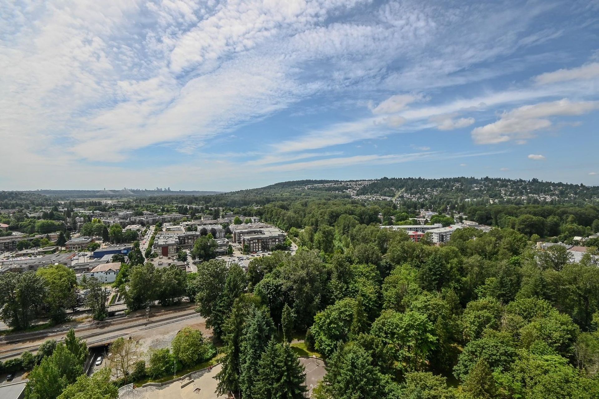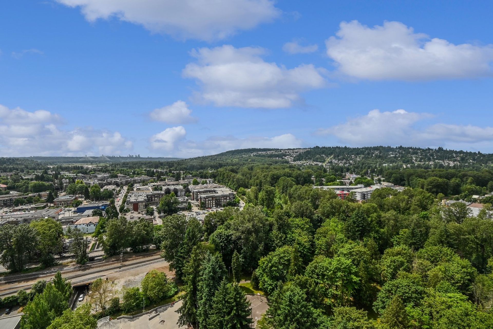 2606 – 2789 Shaughnessy Street is a rare and stunning offering in Port Coquitlam. Not only is this two-bedroom, two-bathroom home a sub-penthouse corner unit, but the floorplan is also unparalleled in its functionality—wasting zero space—and is flooded with natural light thanks to its southeast exposure. Breathtaking sunrises and sunsets shine through sweeping panoramic views. From Minnekhada Regional Park’s High Knoll and Mount Baker to ƛ̓éxətəm Regional Park and Mundy Park, every room offers striking natural vistas.
