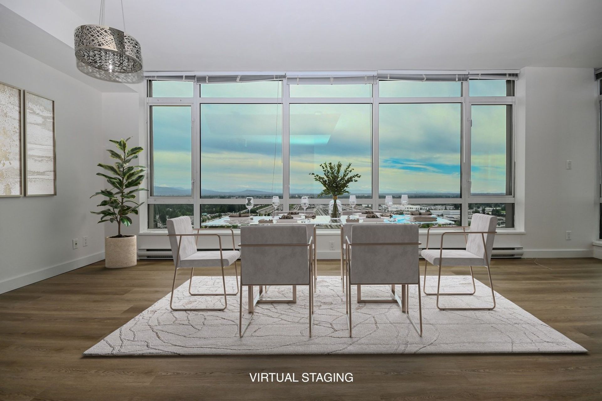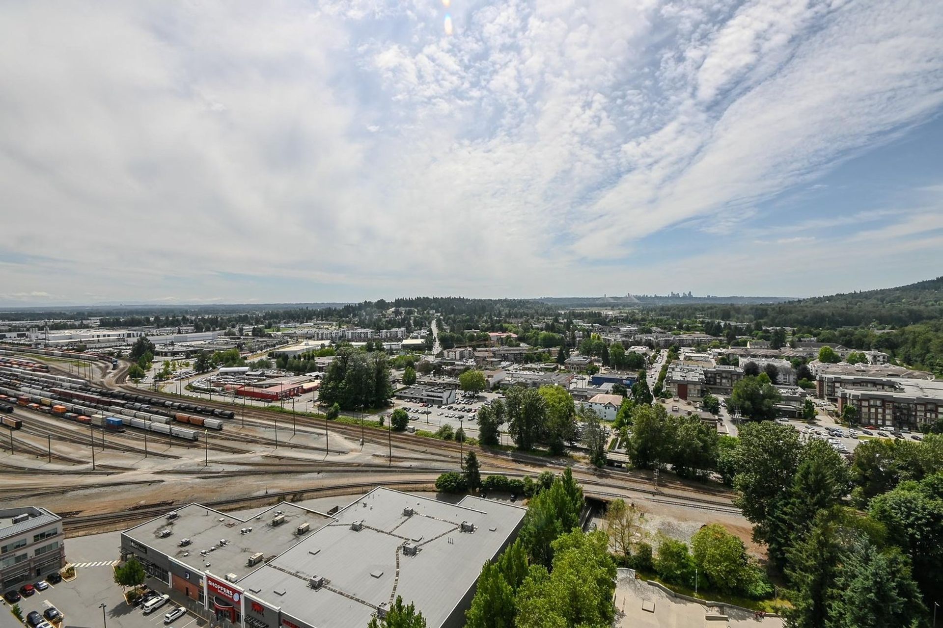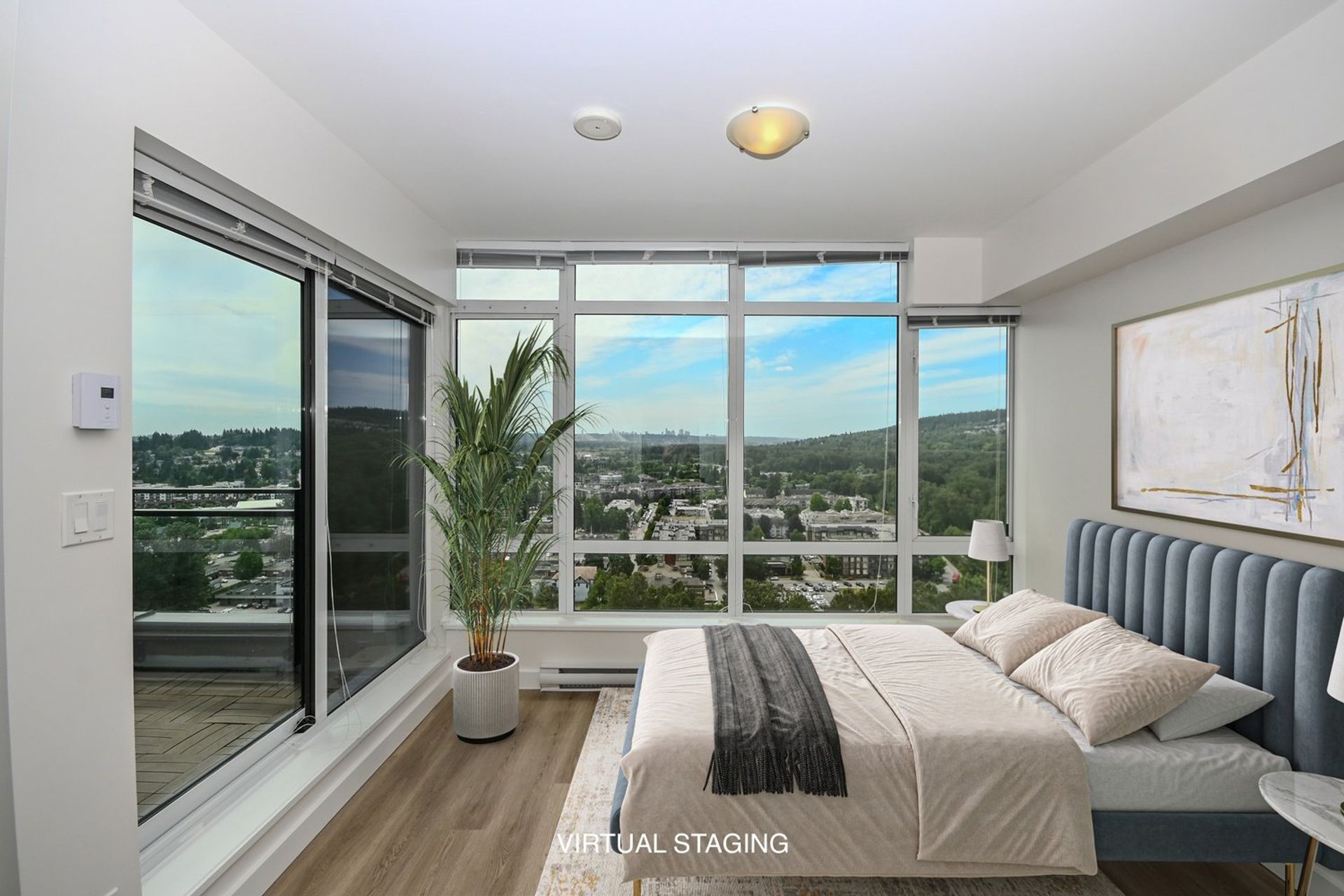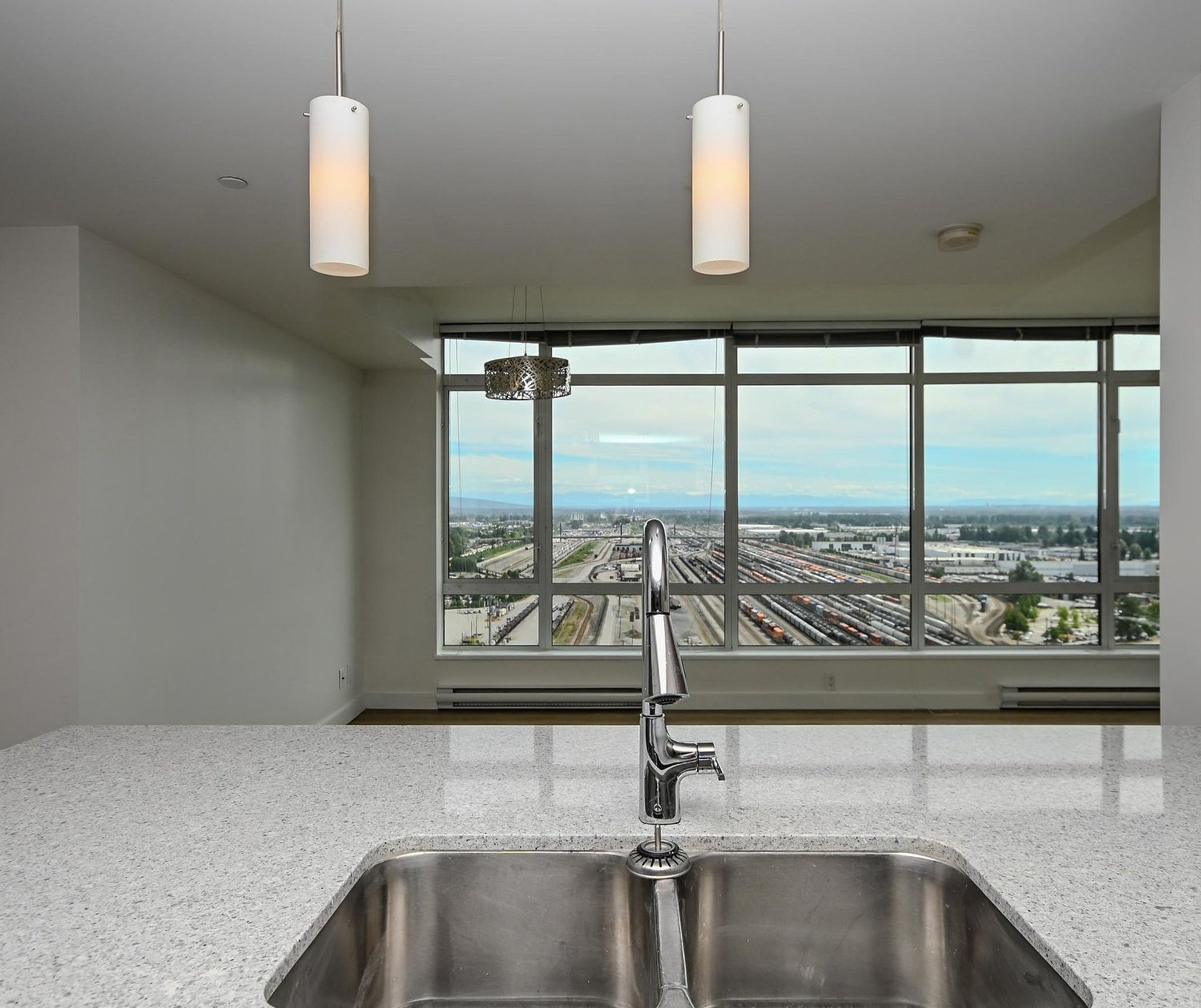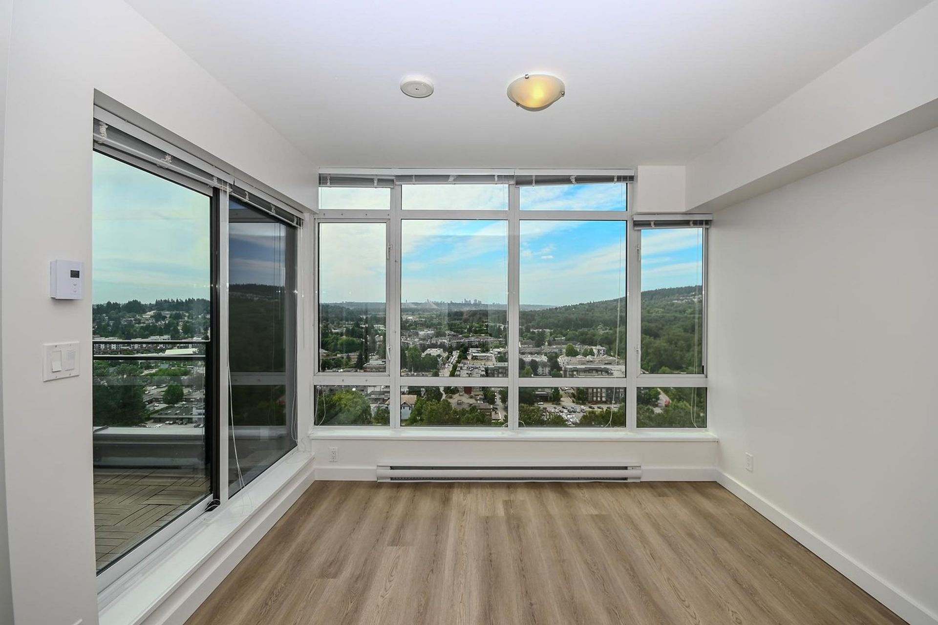 2606 – 2789 Shaughnessy Street is a rare and stunning offering in Port Coquitlam. Not only is this two-bedroom, two-bathroom home a sub-penthouse corner unit, but the floorplan is also unparalleled in its functionality—wasting zero space—and is flooded with natural light thanks to its southeast exposure. Breathtaking sunrises and sunsets shine through sweeping panoramic views. From Minnekhada Regional Park’s High Knoll and Mount Baker to ƛ̓éxətəm Regional Park and Mundy Park, every room offers striking natural vistas.