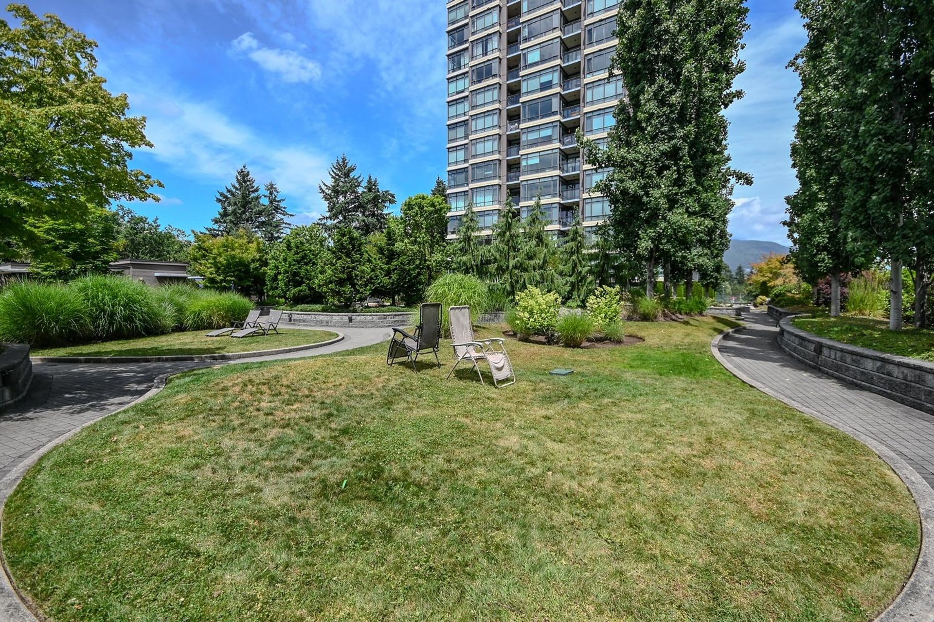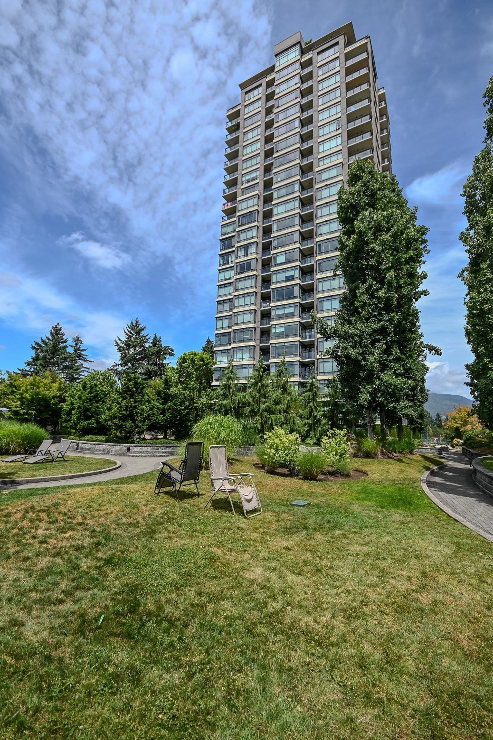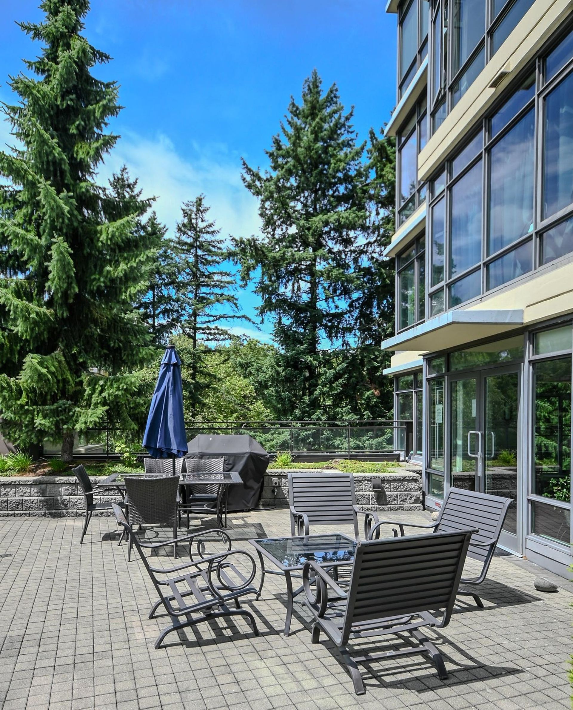 A substantial bonus: unit 2606 comes with two full-sized, side-by-side parking stalls and two storage lockers. The building itself offers exceptional amenities, including a palatial private park on the fourth floor. This unique space features multiple lawn areas, winding pathways, quiet seating nooks, a water feature, communal BBQ, and direct access to a lounge with a full kitchen, TV, and cozy gathering area. Also on the fourth floor: a games room with foosball, pool, board game tables, a small library, and a covered deck.