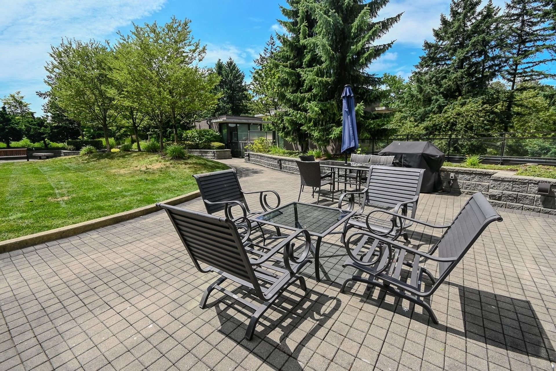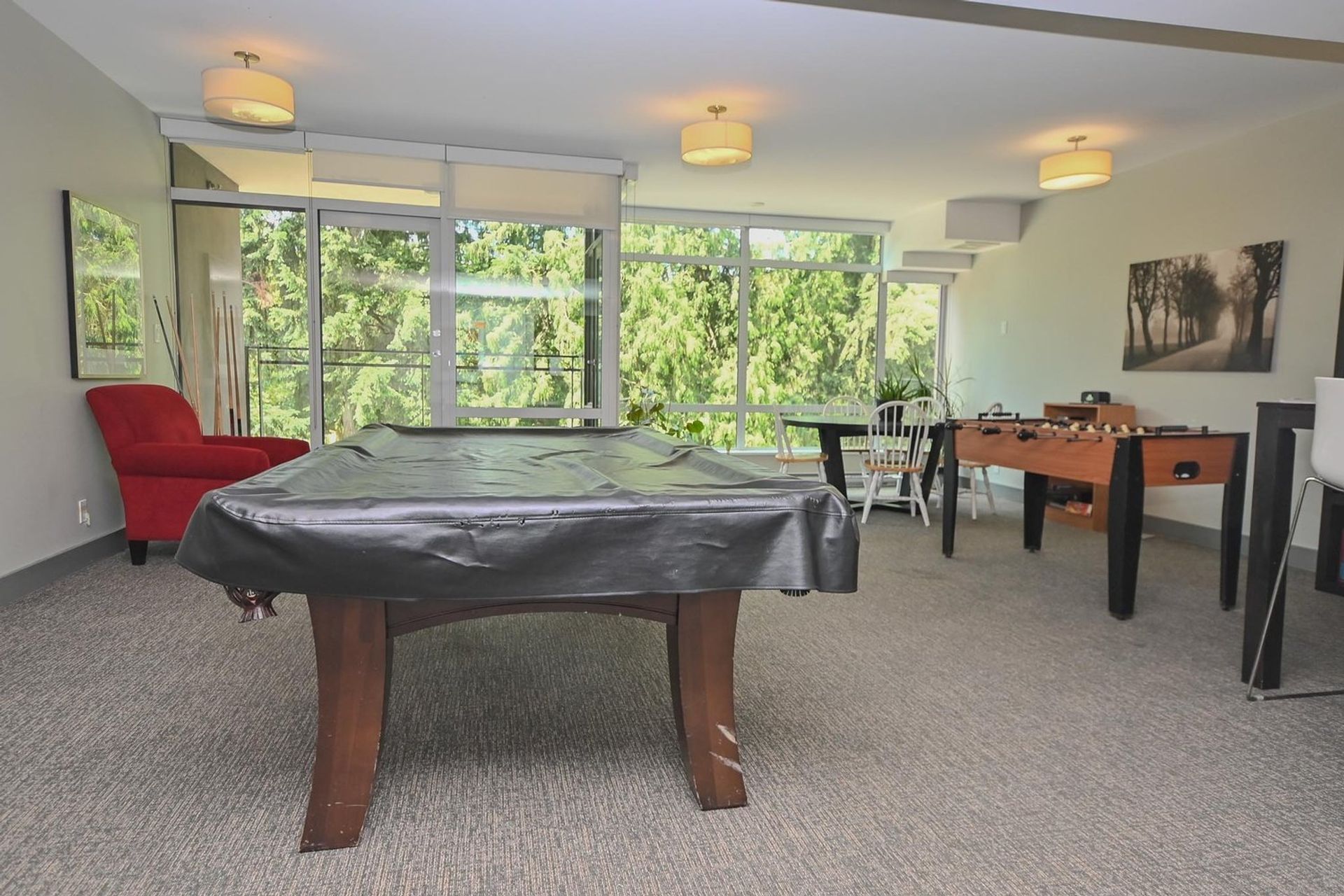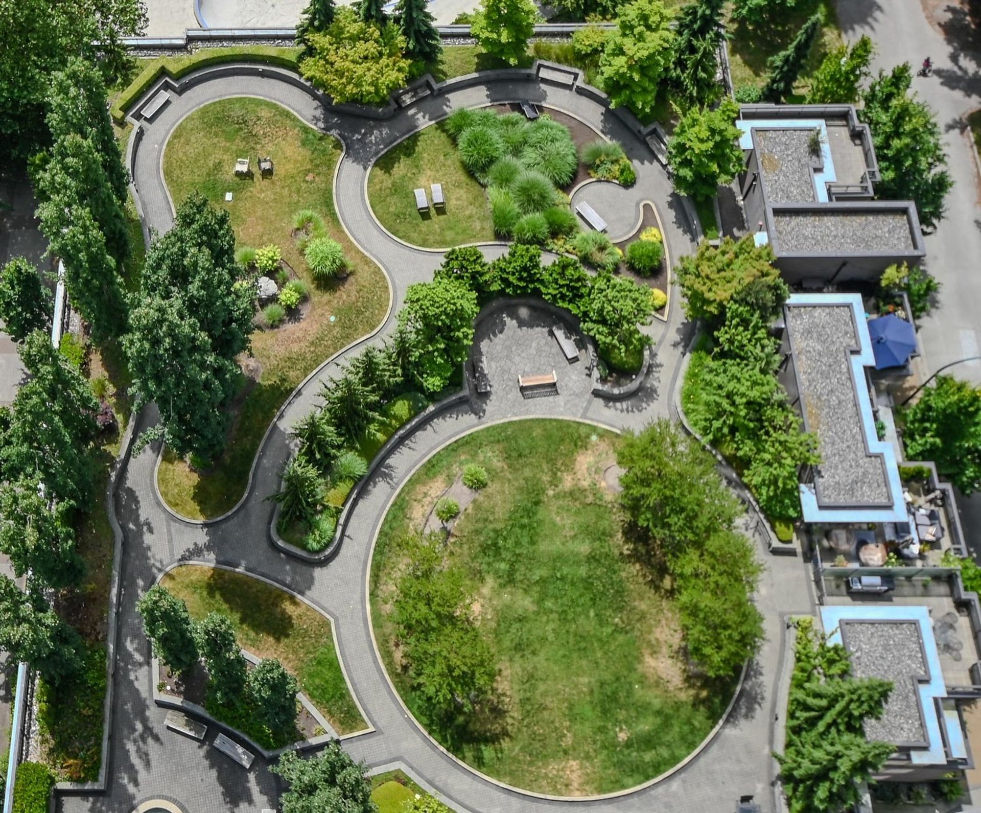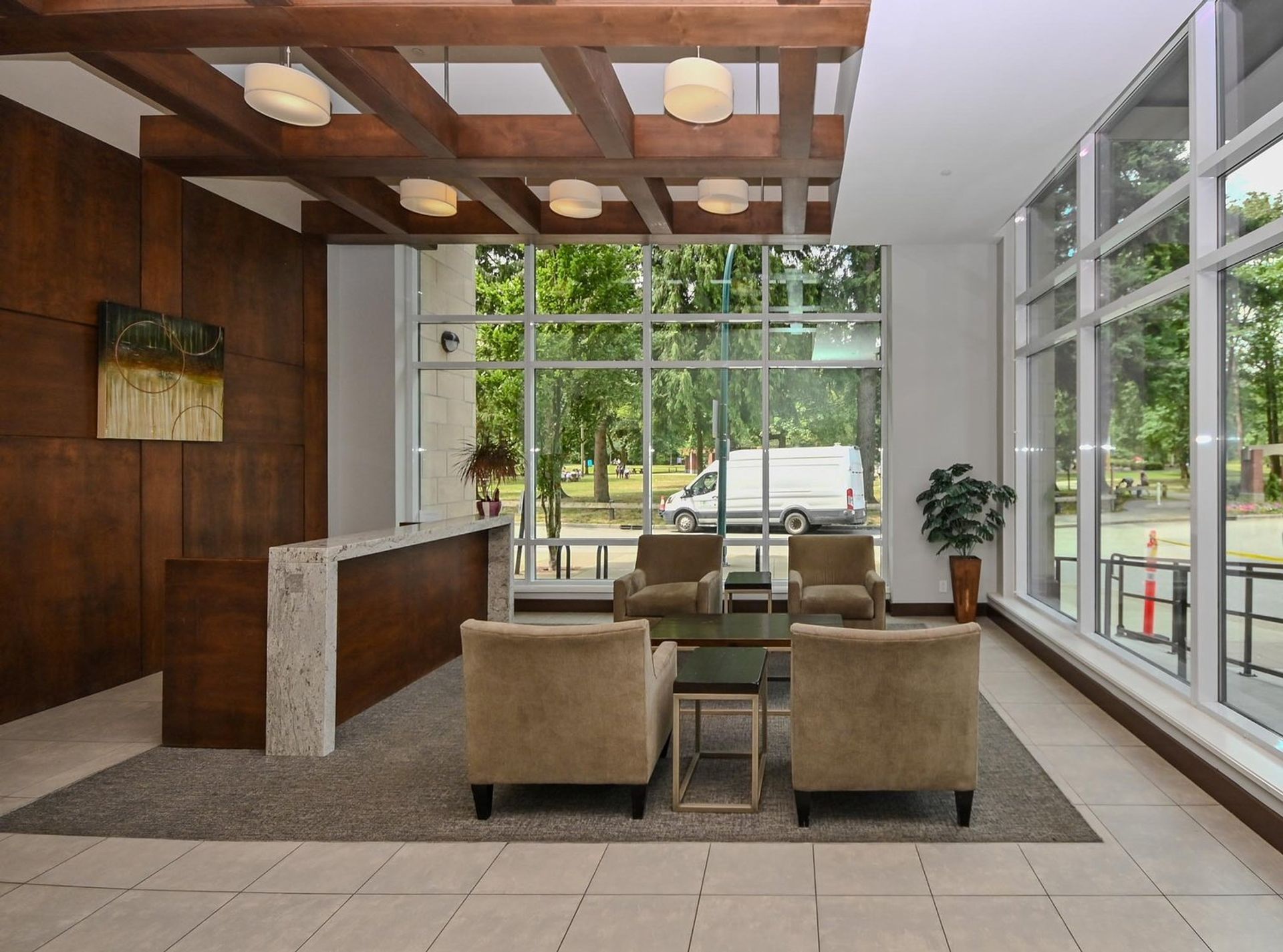 A substantial bonus: unit 2606 comes with two full-sized, side-by-side parking stalls and two storage lockers. The building itself offers exceptional amenities, including a palatial private park on the fourth floor. This unique space features multiple lawn areas, winding pathways, quiet seating nooks, a water feature, communal BBQ, and direct access to a lounge with a full kitchen, TV, and cozy gathering area. Also on the fourth floor: a games room with foosball, pool, board game tables, a small library, and a covered deck.