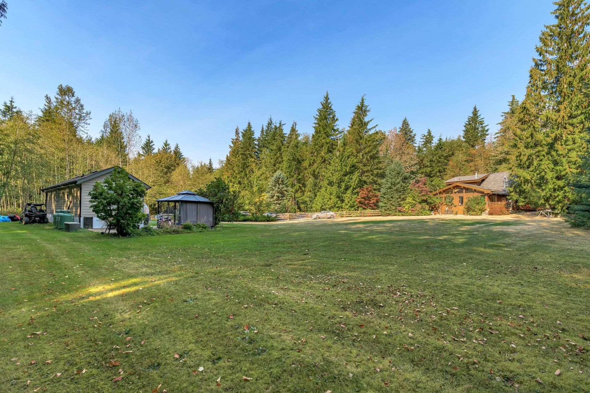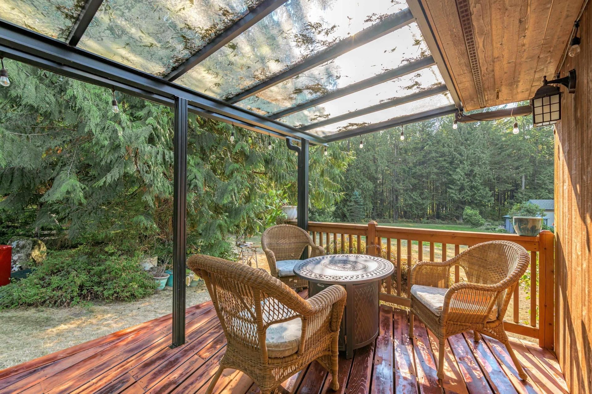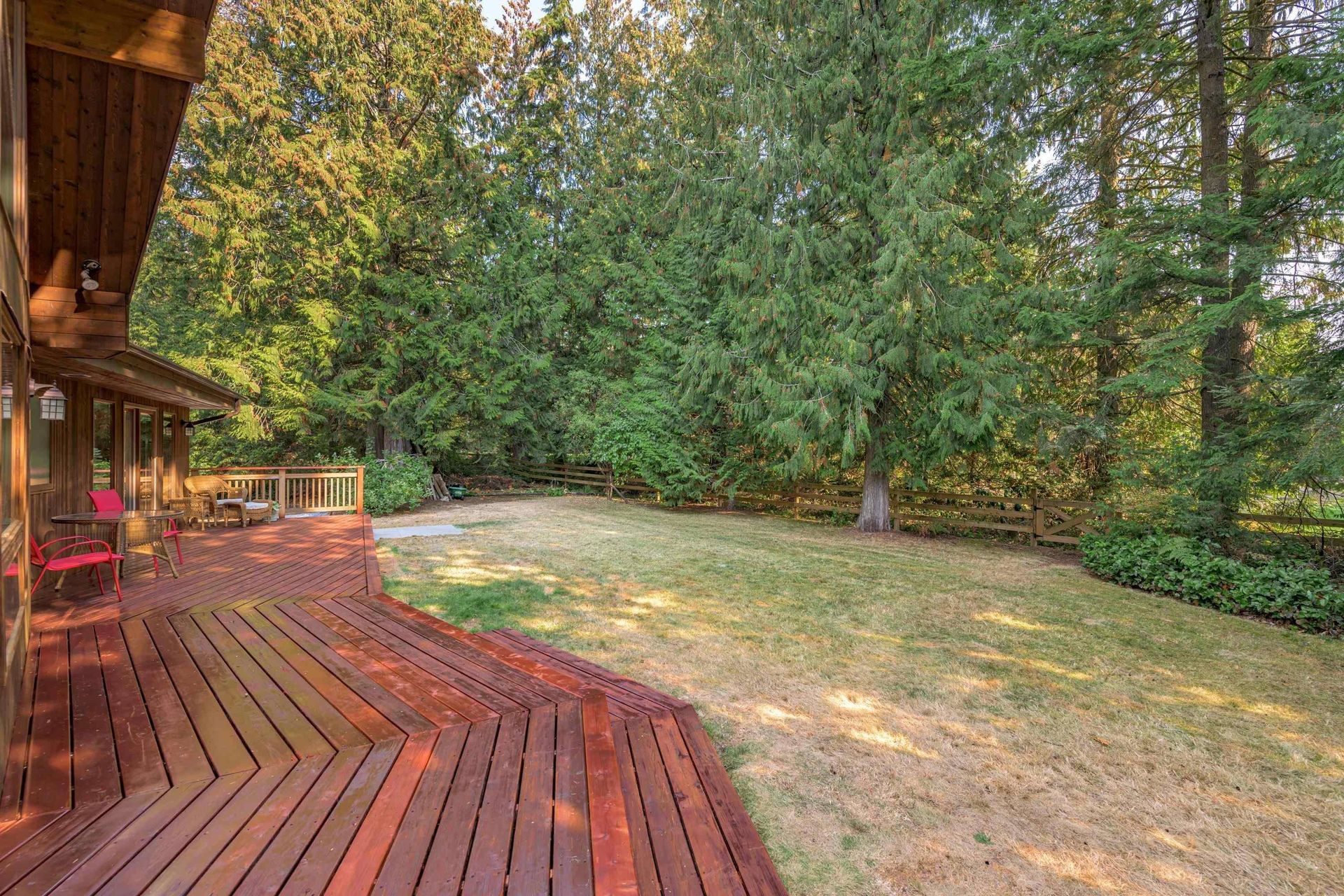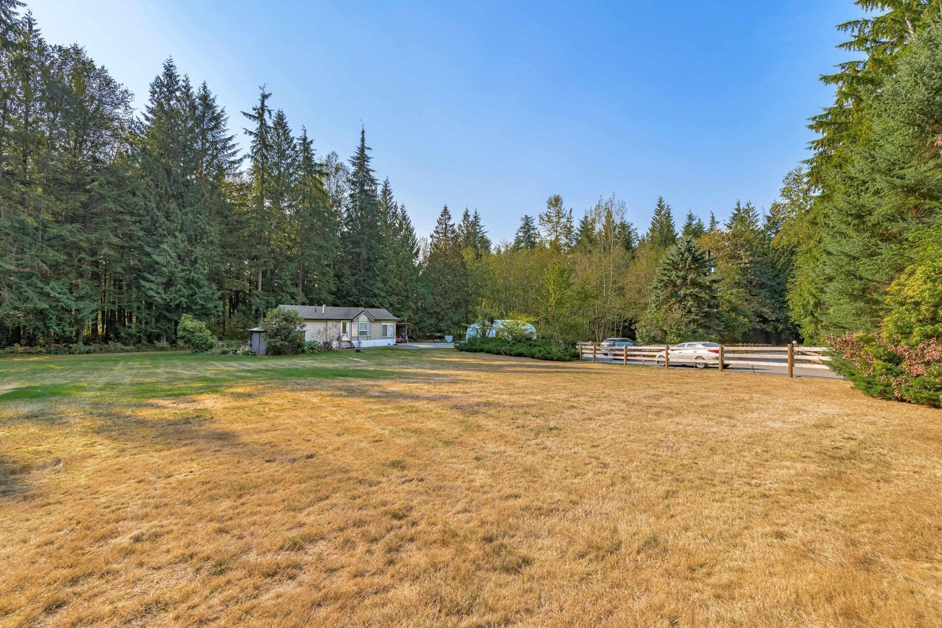 Welcome to your very private, flat 5 acres with a great custom build home. Home backs onto a golf course. The home offers 4 bedrooms, 3 bathrooms, open floor plan, ideal for entertaining. Vaulted ceilings and huge windows allow tons of natural light. Renovations include newer flooring, Quartz counters, stainless steel appliances, newer root, HW on demand. You will enjoy the huge wooden deck off the living room. Walk off the deck to your hot tub. Large, detached workshop with electric power. Full hookup installed for RV or mobile home. Call today for your private viewing.