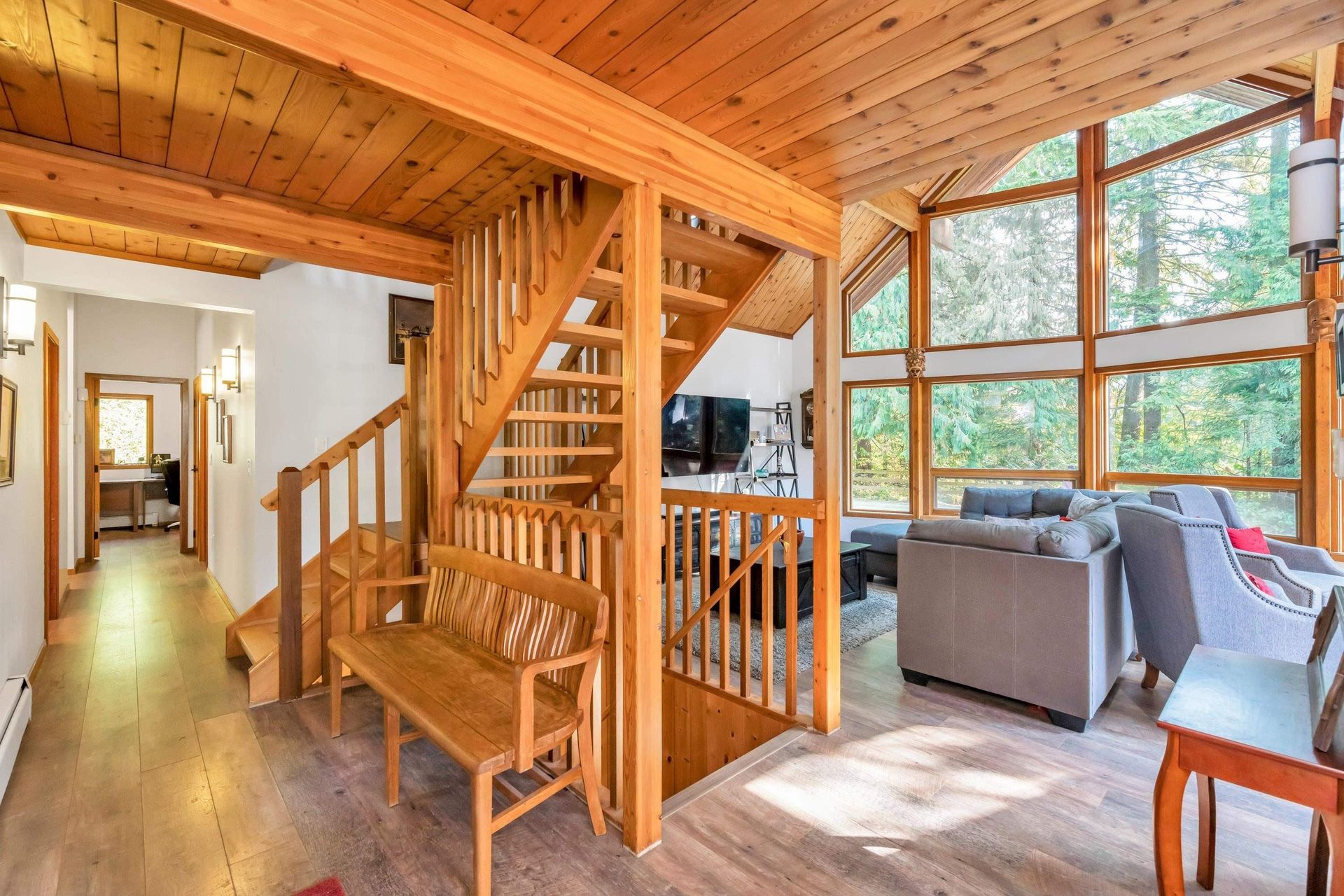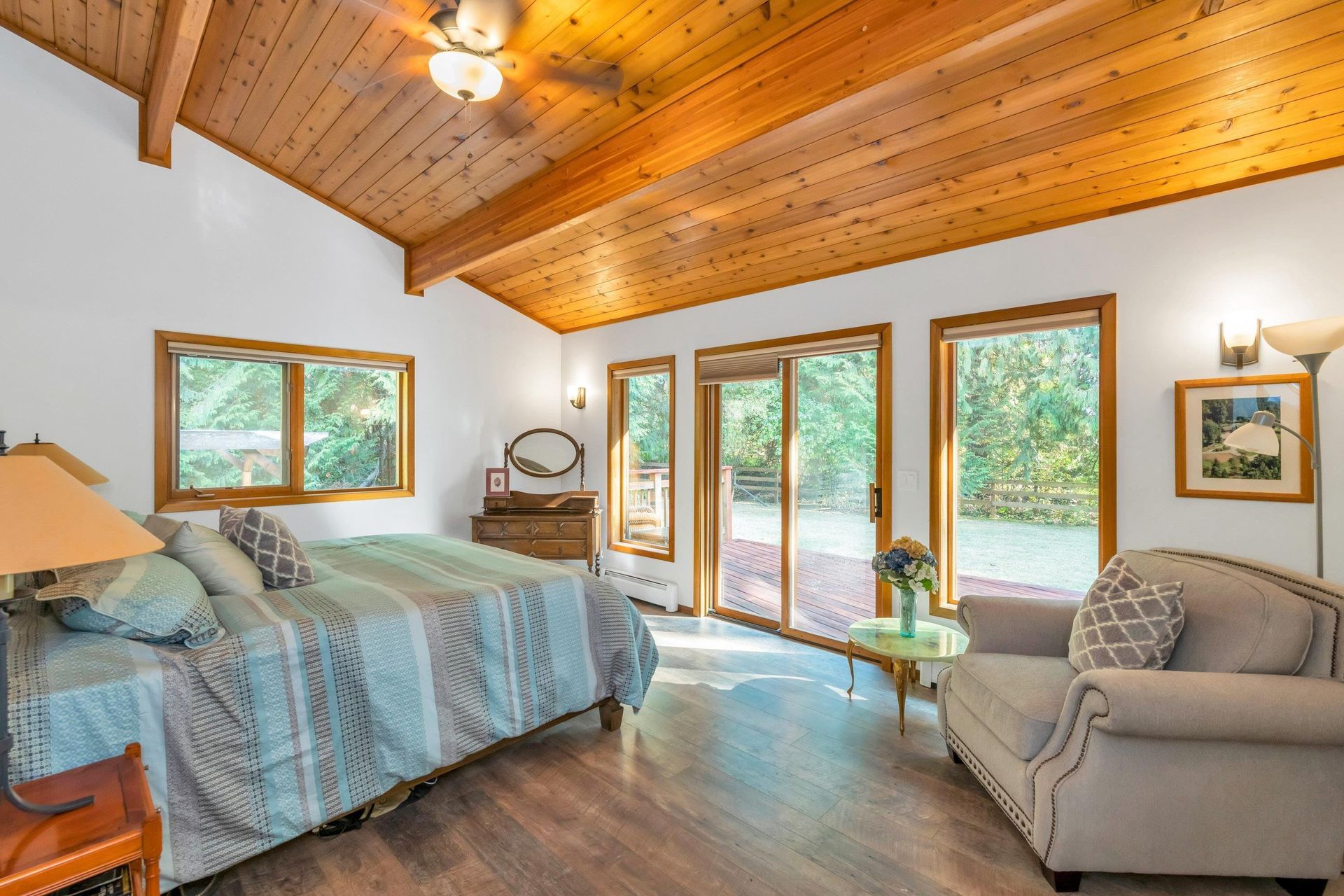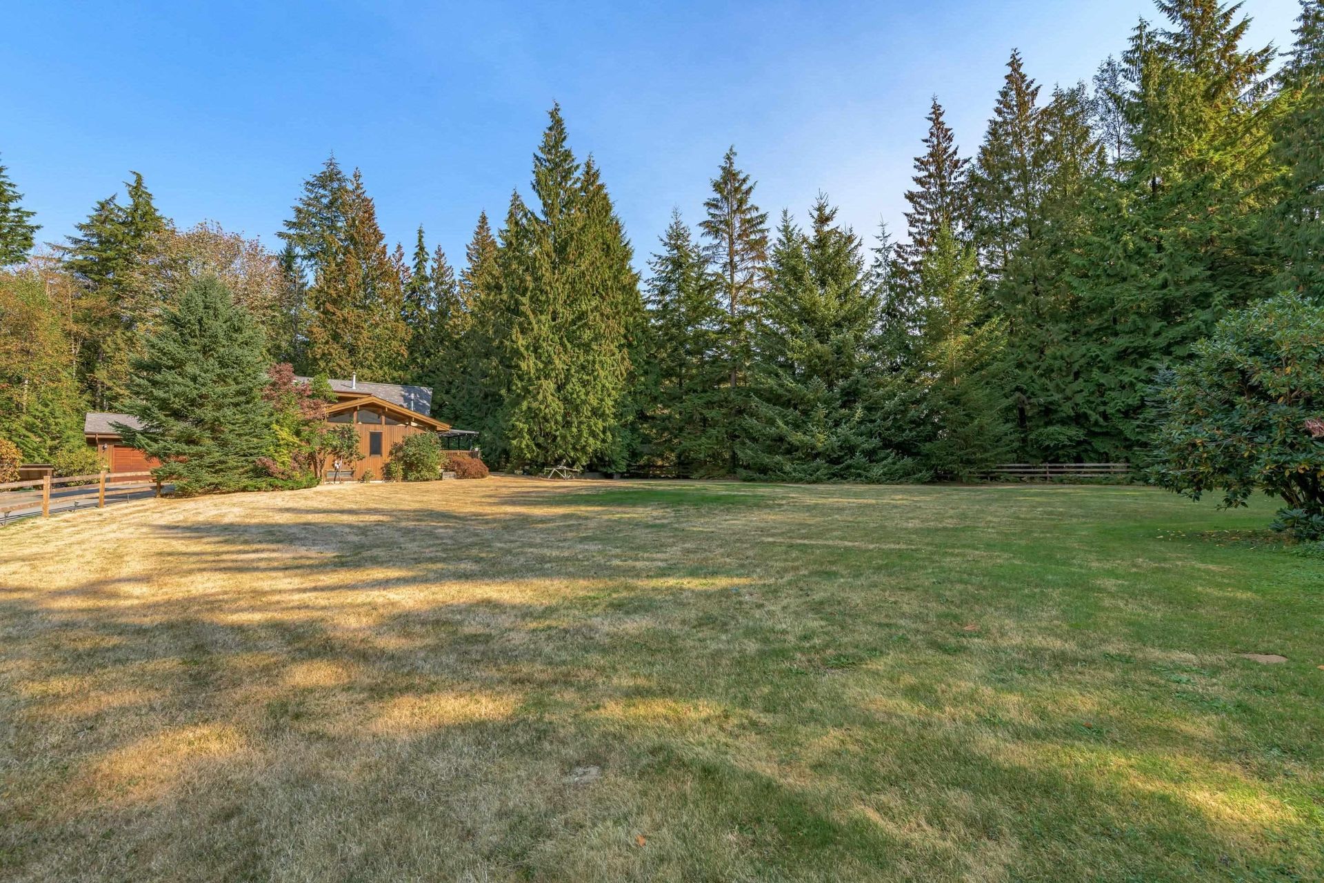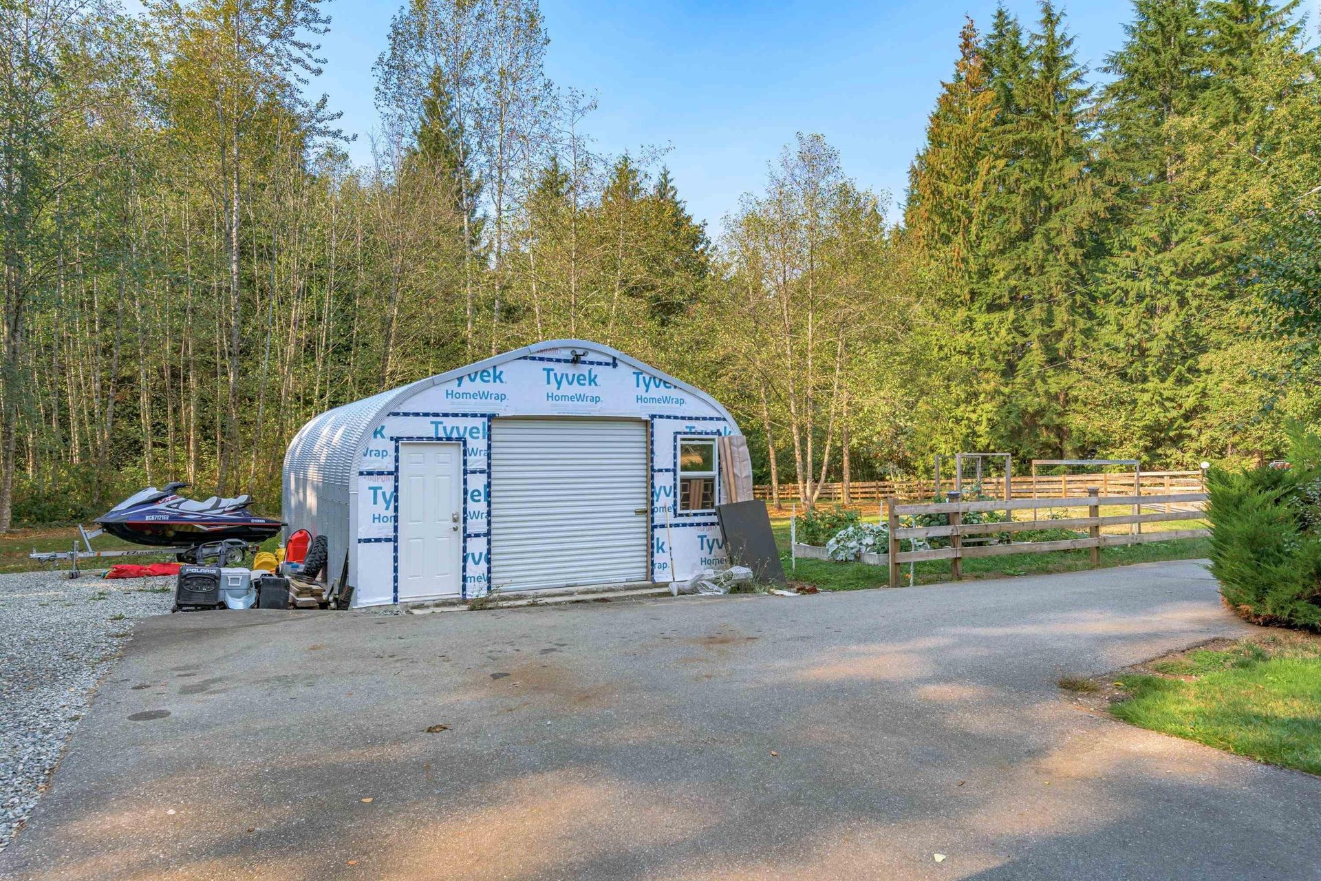 Welcome to your very private, flat 5 acres with a great custom build home. Home backs onto a golf course. The home offers 4 bedrooms, 3 bathrooms, open floor plan, ideal for entertaining. Vaulted ceilings and huge windows allow tons of natural light. Renovations include newer flooring, Quartz counters, stainless steel appliances, newer root, HW on demand. You will enjoy the huge wooden deck off the living room. Walk off the deck to your hot tub. Large, detached workshop with electric power. Full hookup installed for RV or mobile home. Call today for your private viewing.