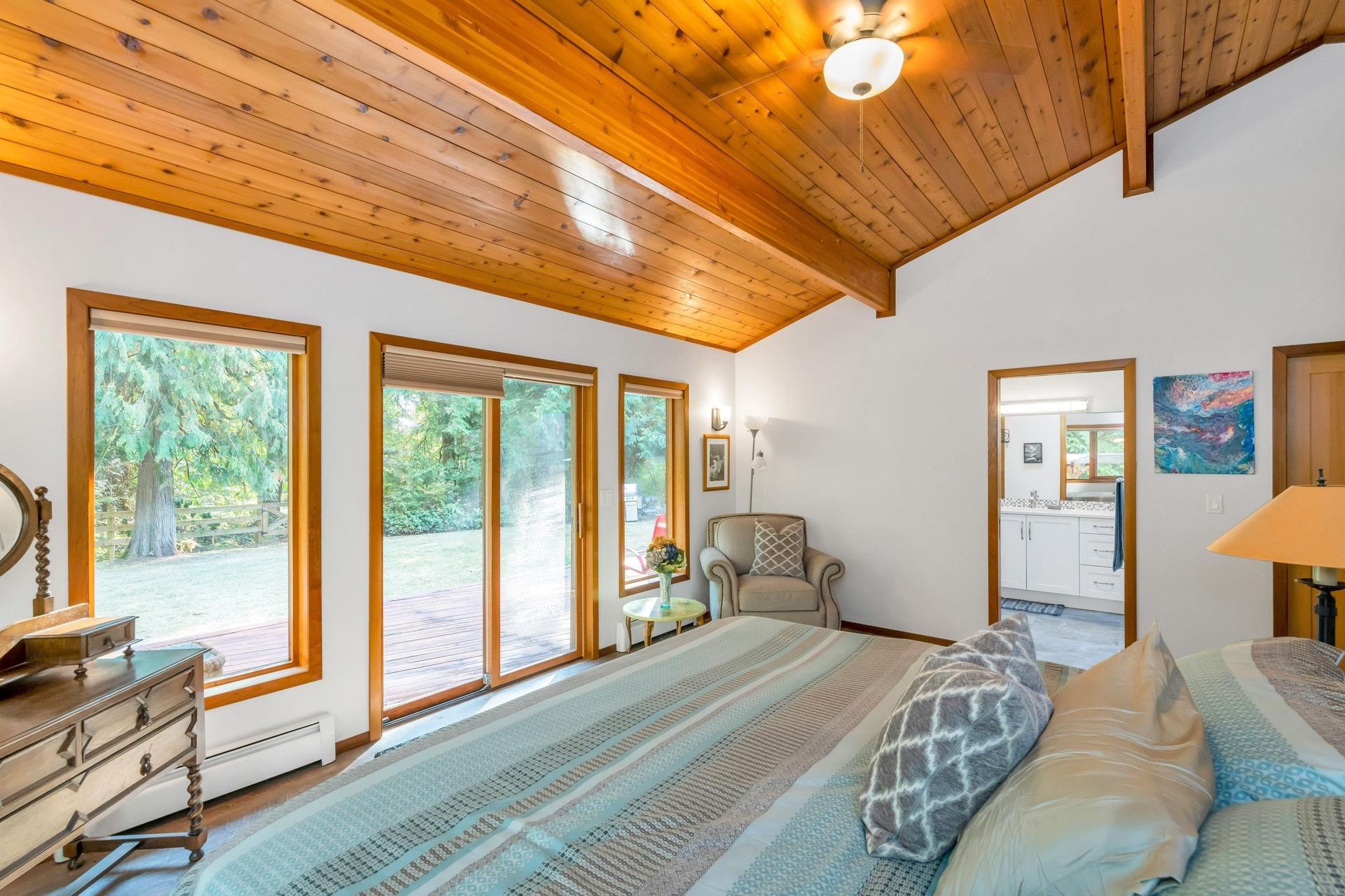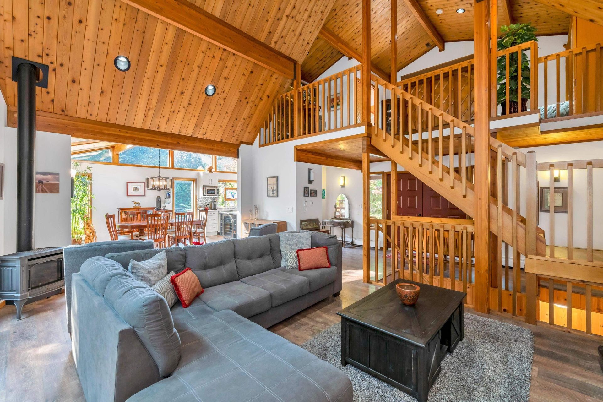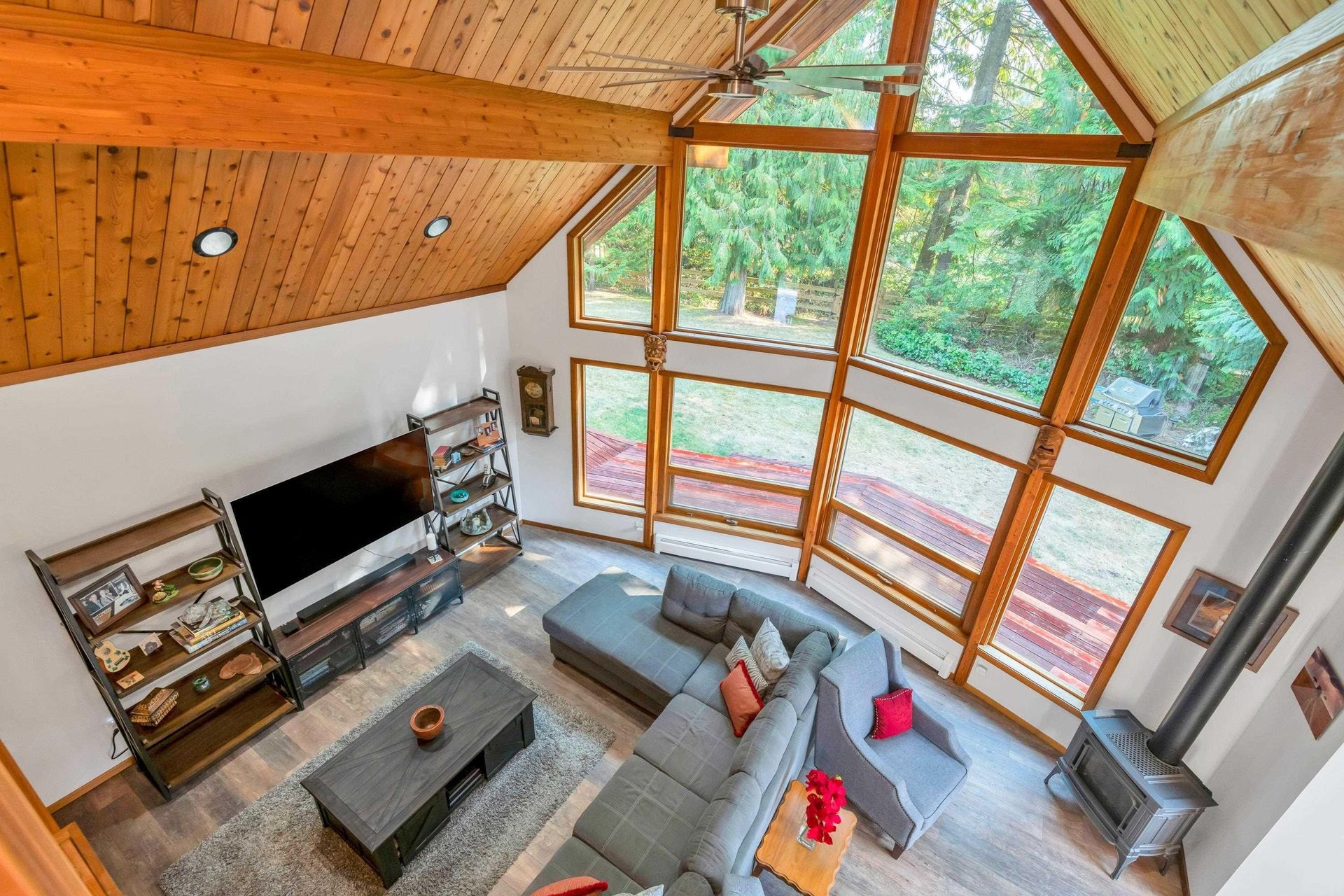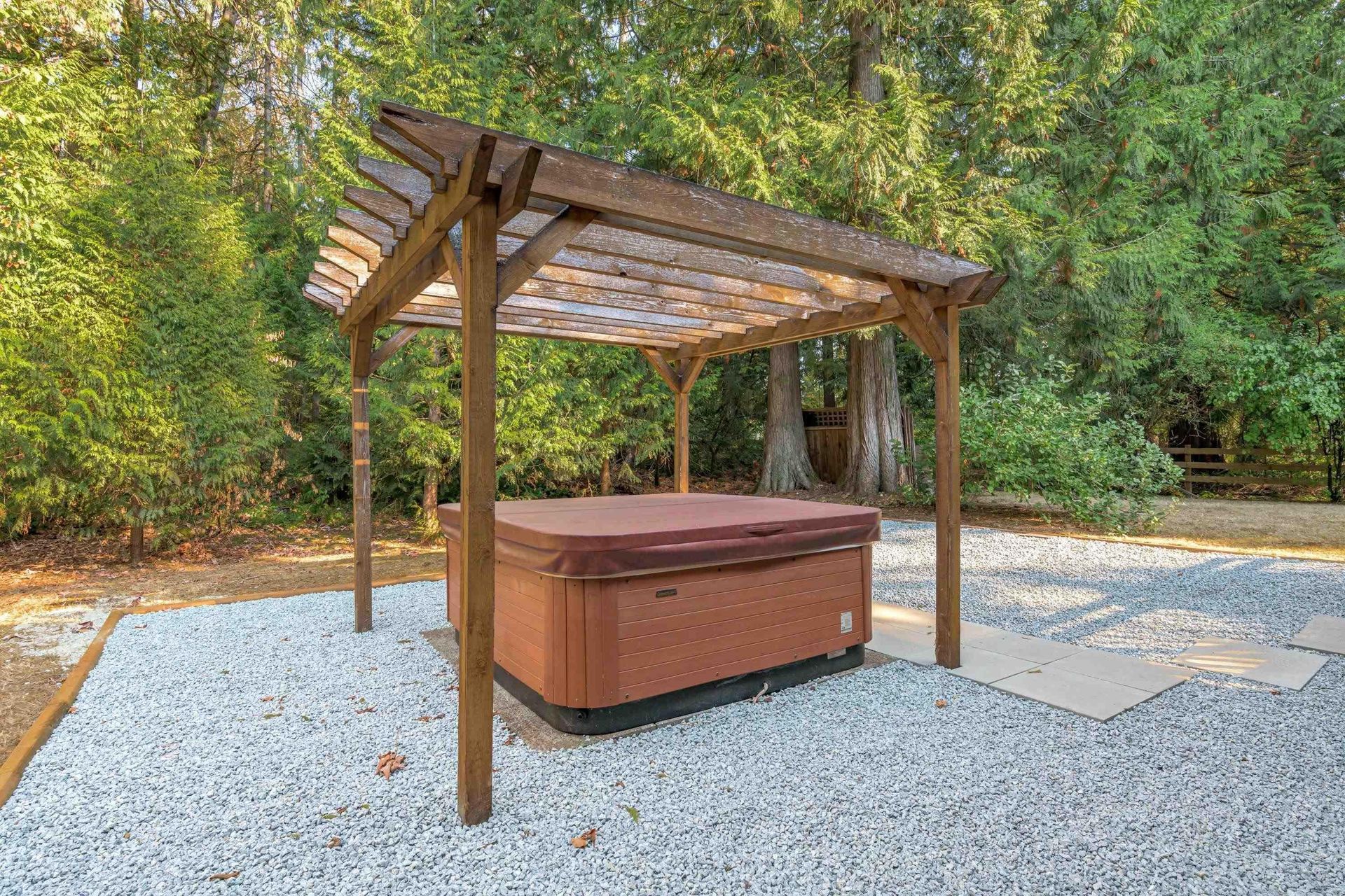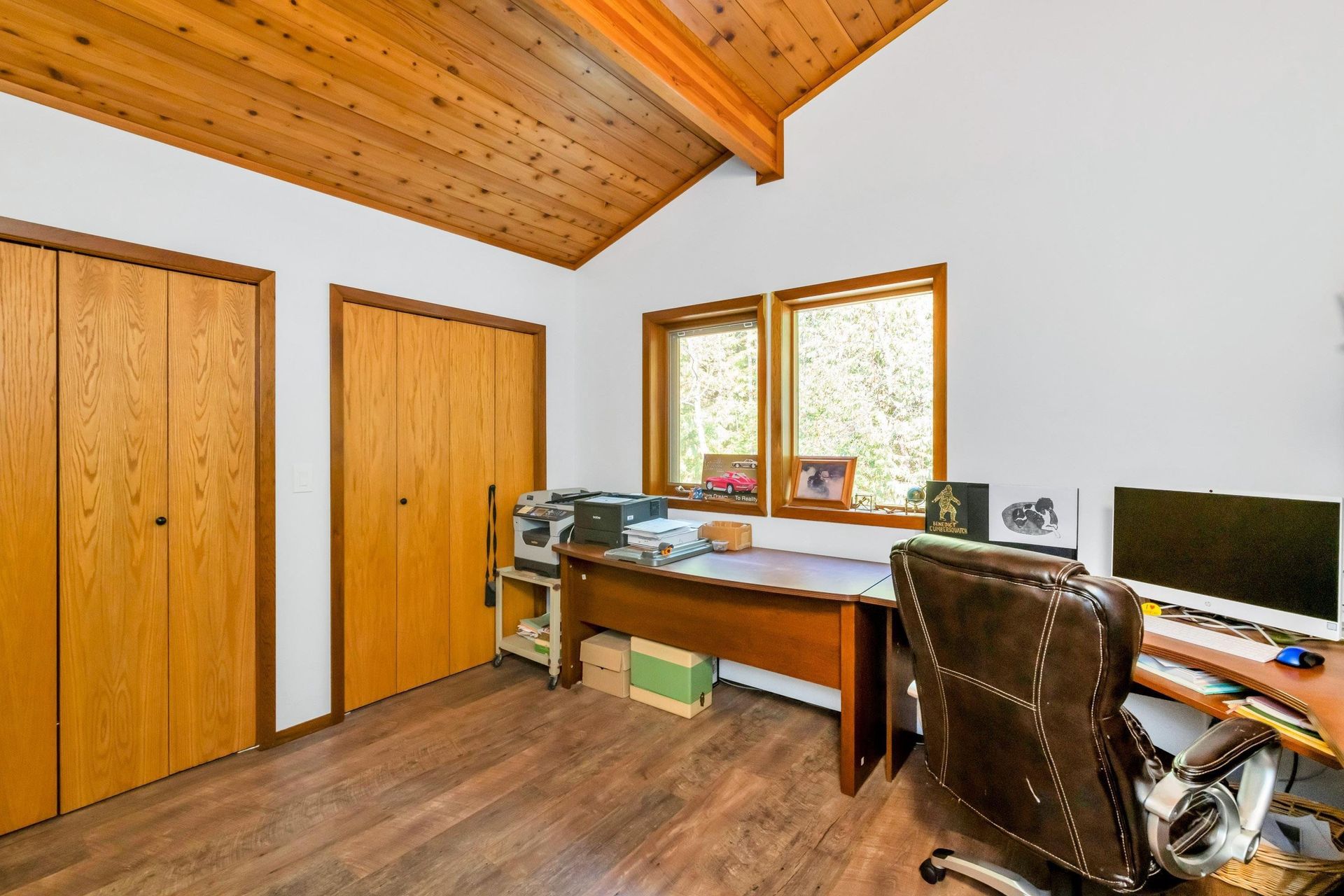 Welcome to your very private, flat 5 acres with a great custom build home. Home backs onto a golf course. The home offers 4 bedrooms, 3 bathrooms, open floor plan, ideal for entertaining. Vaulted ceilings and huge windows allow tons of natural light. Renovations include newer flooring, Quartz counters, stainless steel appliances, newer root, HW on demand. You will enjoy the huge wooden deck off the living room. Walk off the deck to your hot tub. Large, detached workshop with electric power. Full hookup installed for RV or mobile home. Call today for your private viewing.