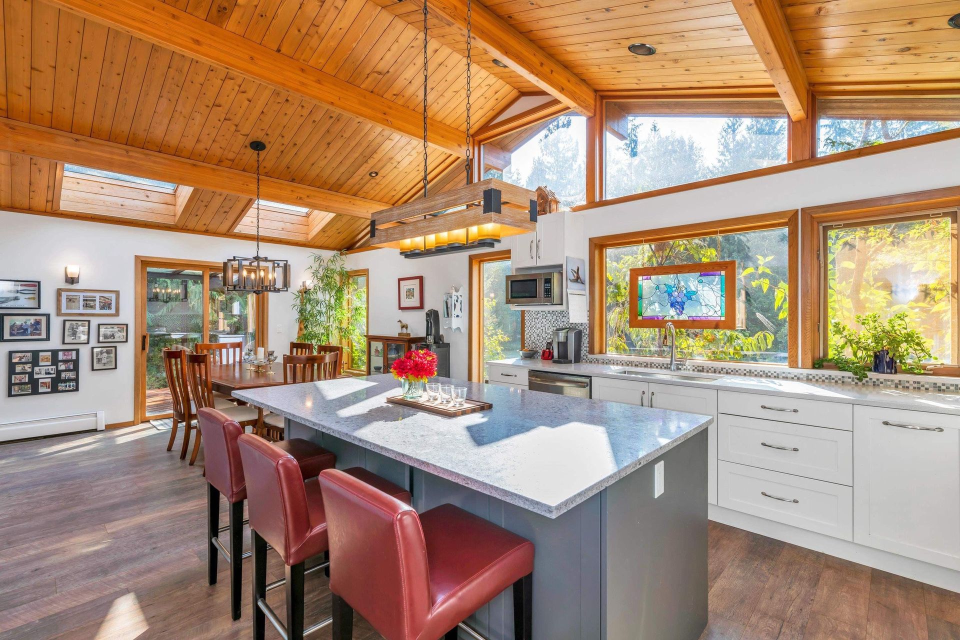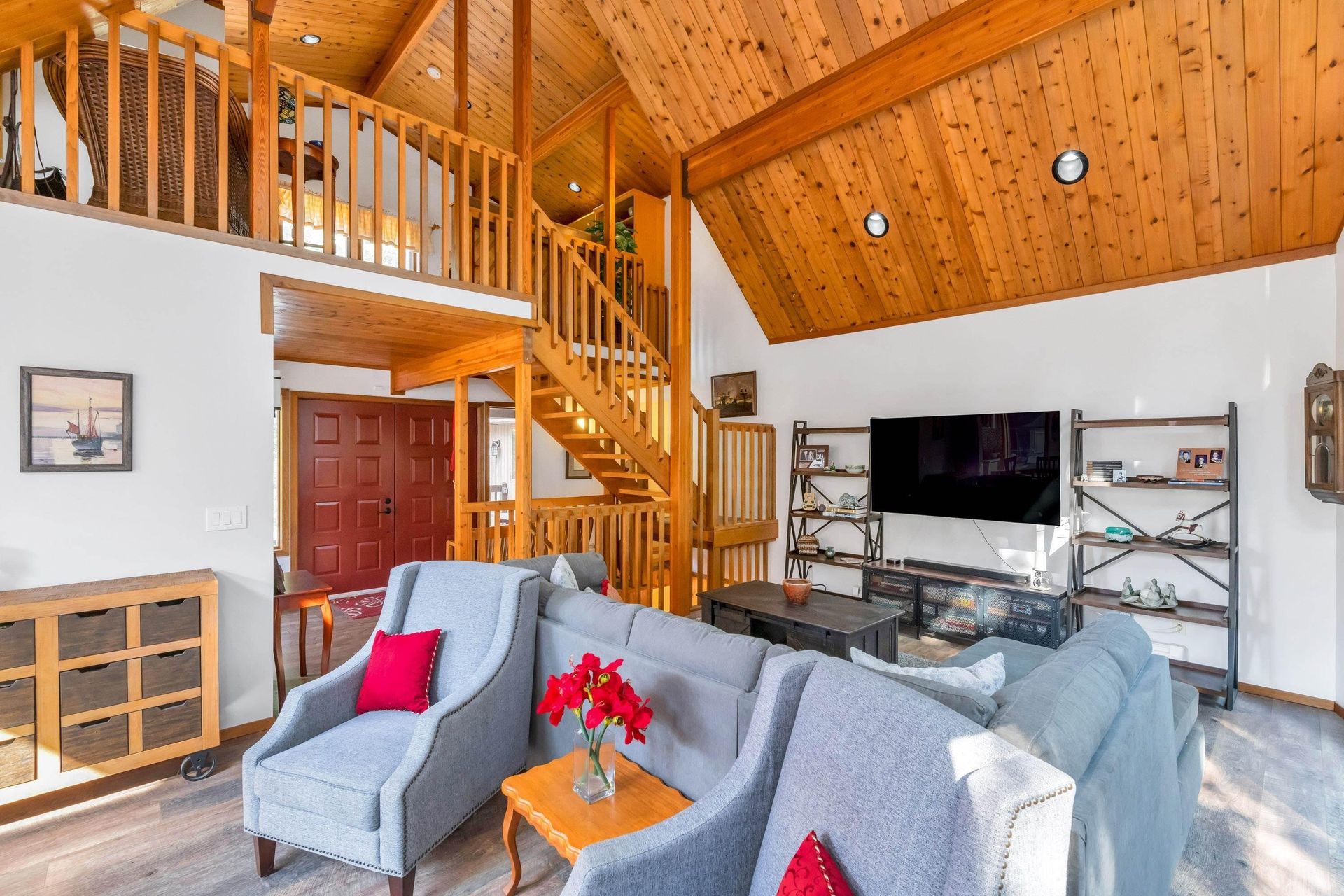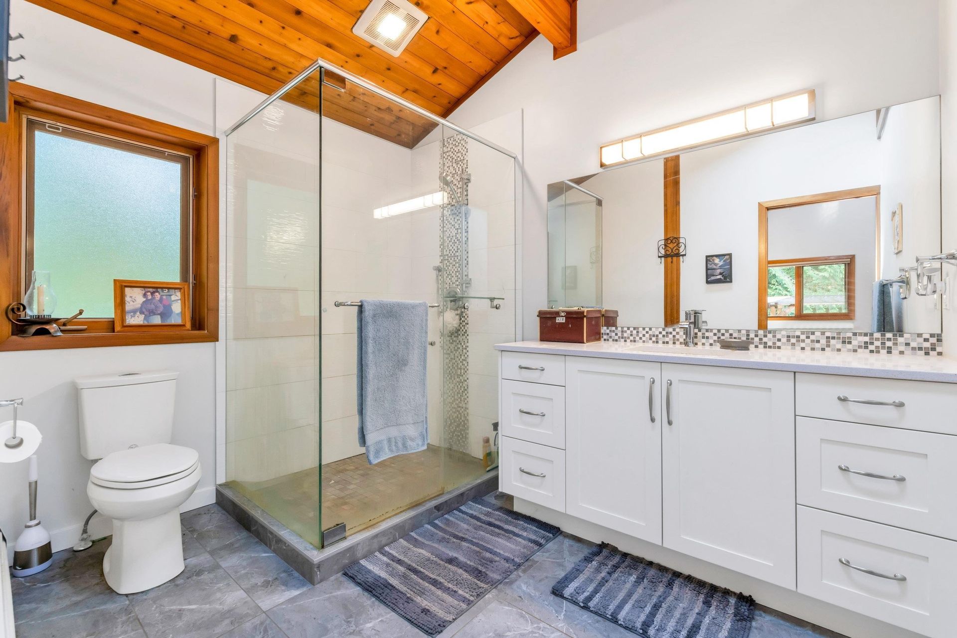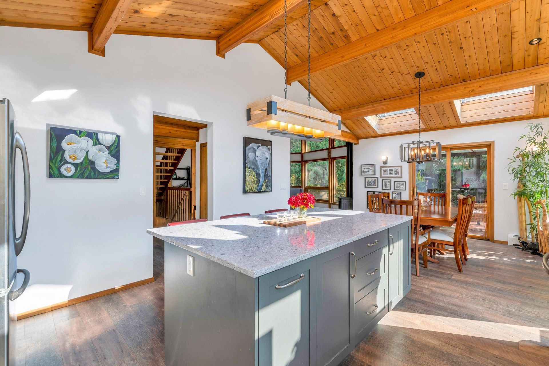 Welcome to your very private, flat 5 acres with a great custom build home. Home backs onto a golf course. The home offers 4 bedrooms, 3 bathrooms, open floor plan, ideal for entertaining. Vaulted ceilings and huge windows allow tons of natural light. Renovations include newer flooring, Quartz counters, stainless steel appliances, newer root, HW on demand. You will enjoy the huge wooden deck off the living room. Walk off the deck to your hot tub. Large, detached workshop with electric power. Full hookup installed for RV or mobile home. Call today for your private viewing.
