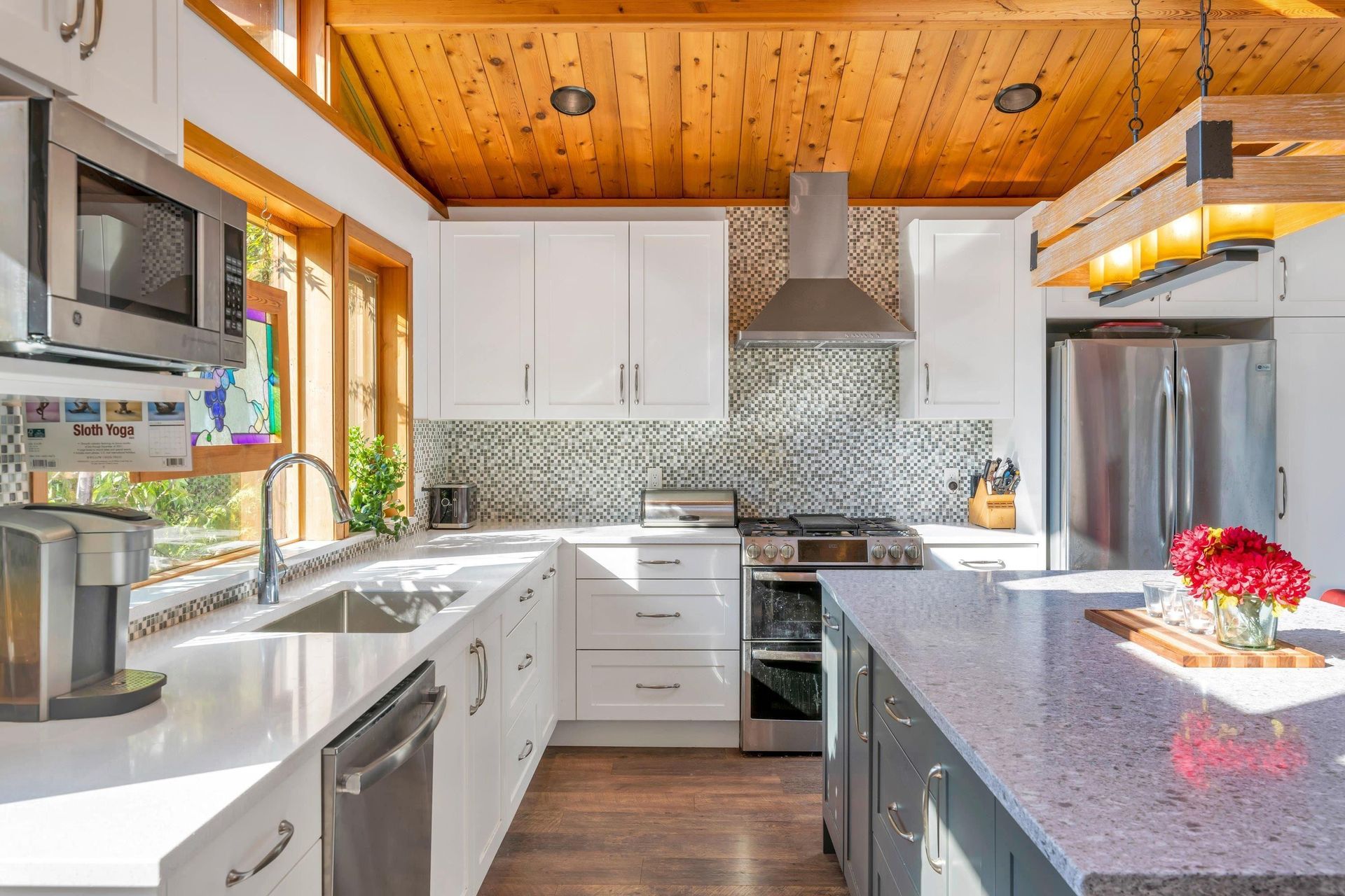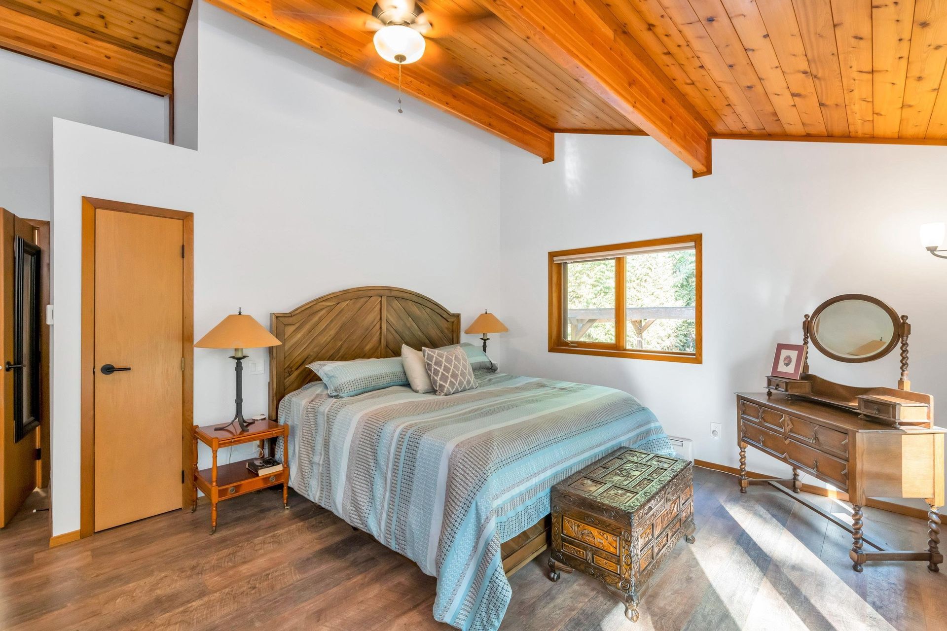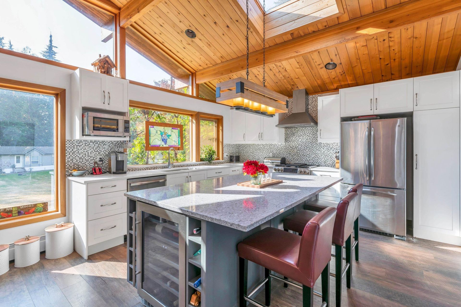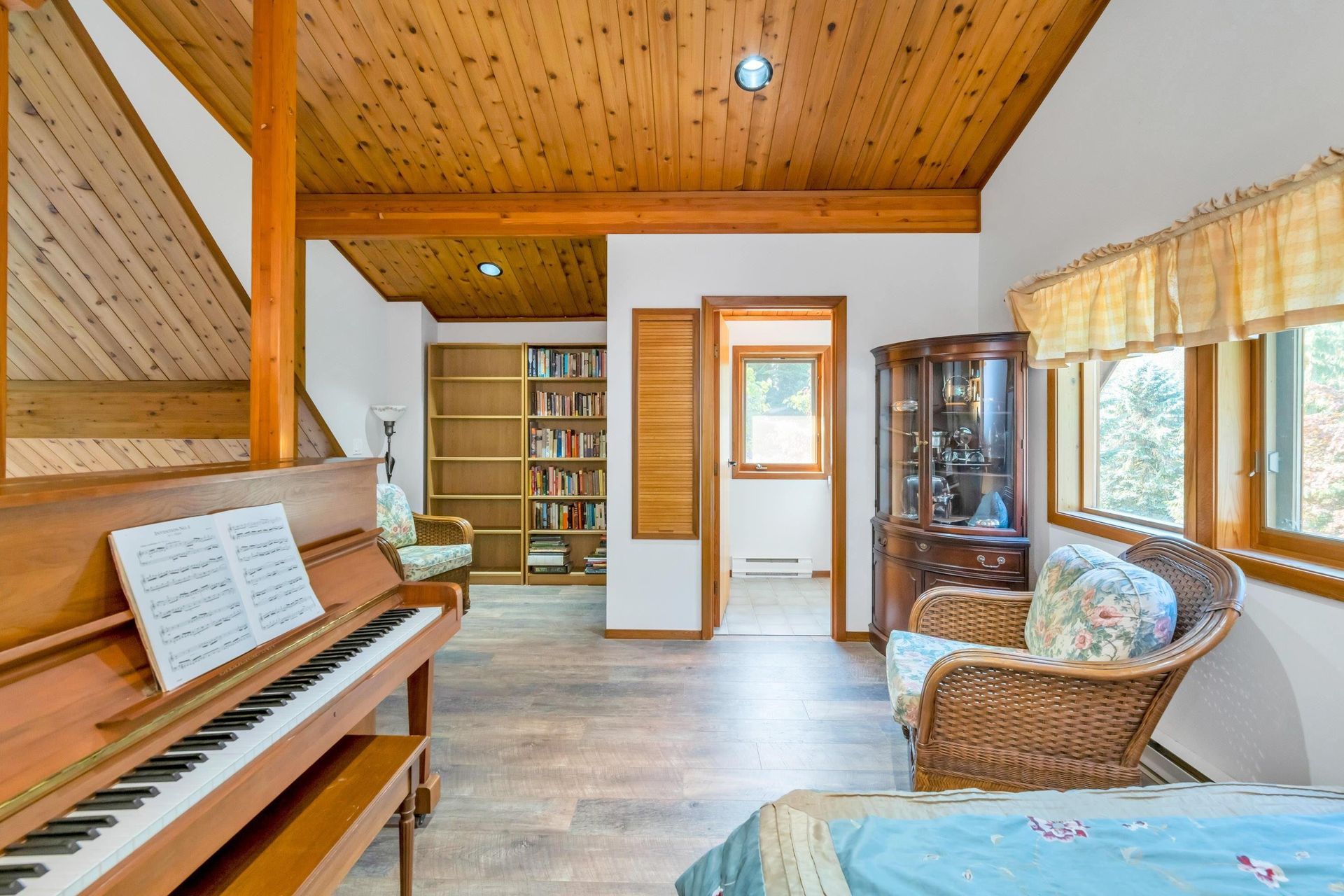 Welcome to your very private, flat 5 acres with a great custom build home. Home backs onto a golf course. The home offers 4 bedrooms, 3 bathrooms, open floor plan, ideal for entertaining. Vaulted ceilings and huge windows allow tons of natural light. Renovations include newer flooring, Quartz counters, stainless steel appliances, newer root, HW on demand. You will enjoy the huge wooden deck off the living room. Walk off the deck to your hot tub. Large, detached workshop with electric power. Full hookup installed for RV or mobile home. Call today for your private viewing.