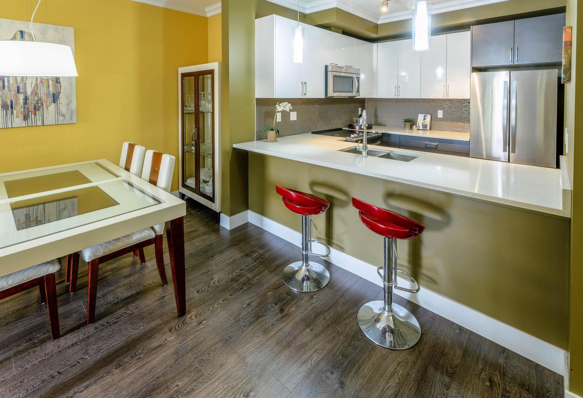 The Altura offers a fantastic location steps from Gates Park, Coquitlam River, new Rec Centre, WCE and downtown PoCo with all shops and services you love. The primary bedroom includes a unique flex space perfect for reading, fitness, even space for bassinet. Kitchen comes with S/S appliances, micro, quartz counters, breakfast bar and glossy backsplash. Living room has electric fireplace and sliding doors to covered balcony. Rentals and 2 pets okay (dog park nearby) Crown Moulding, 9 ft ceilings, parking and storage are all features of this desirable condo. Open House Saturday Sept. 17 from 12-2pm.