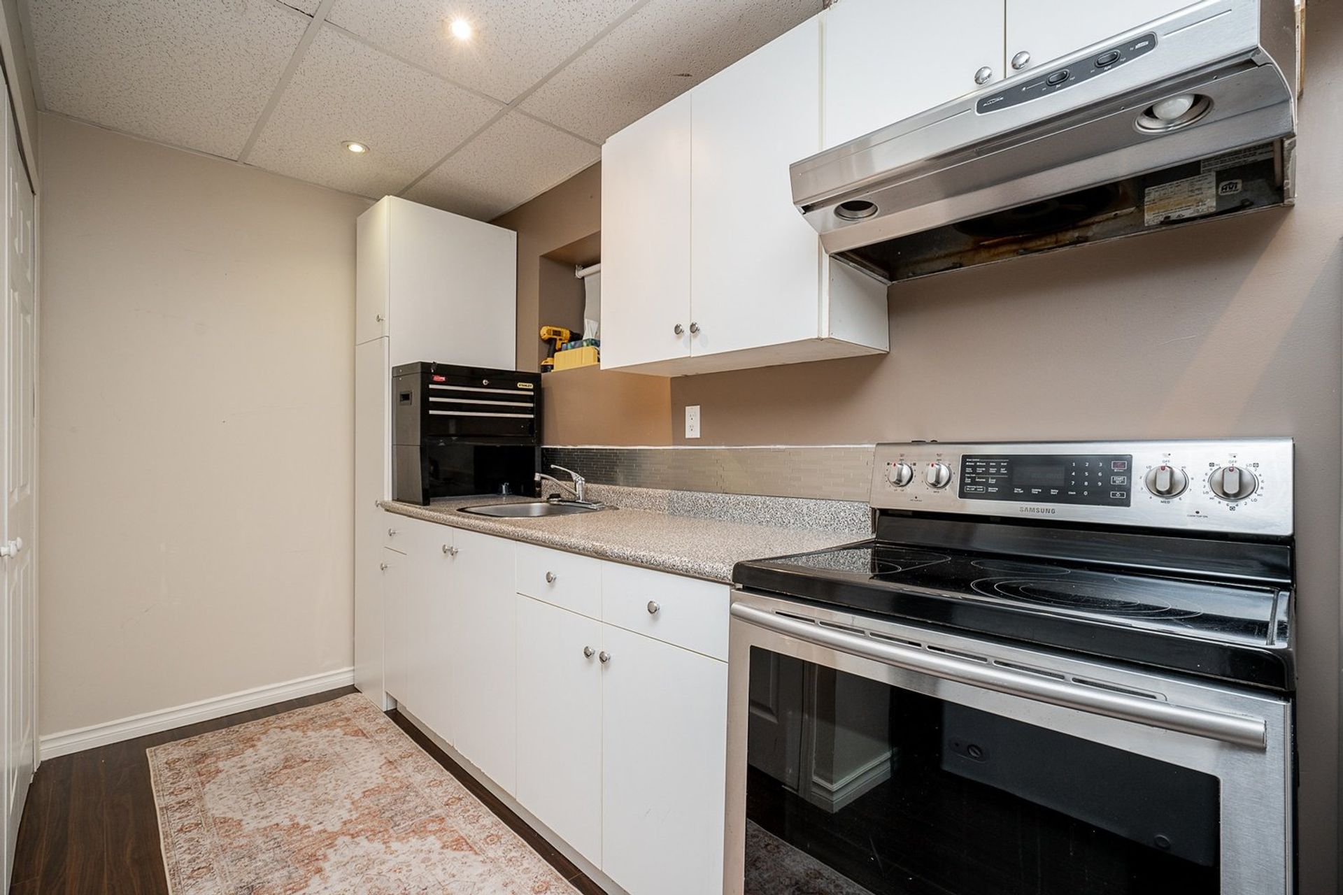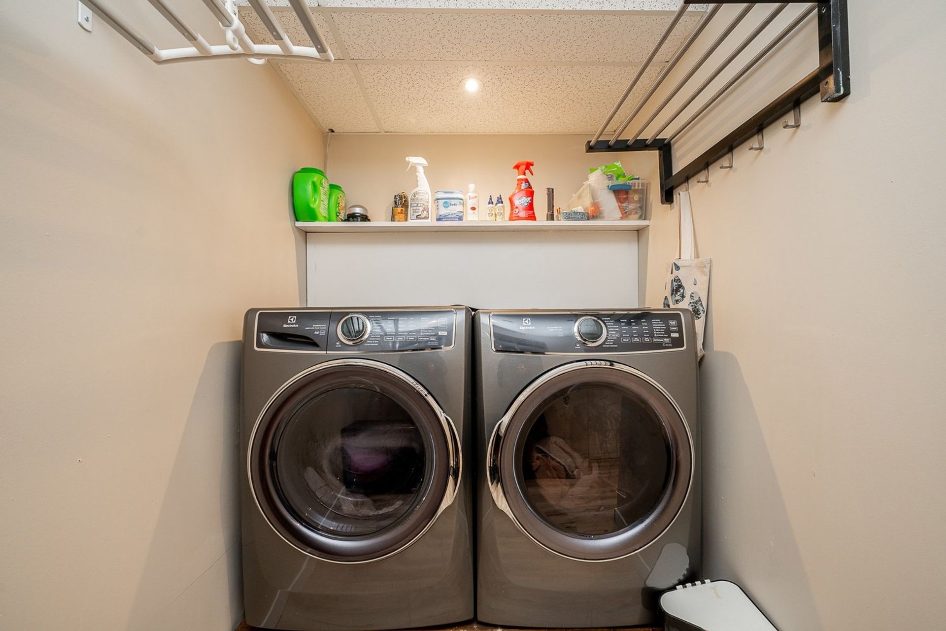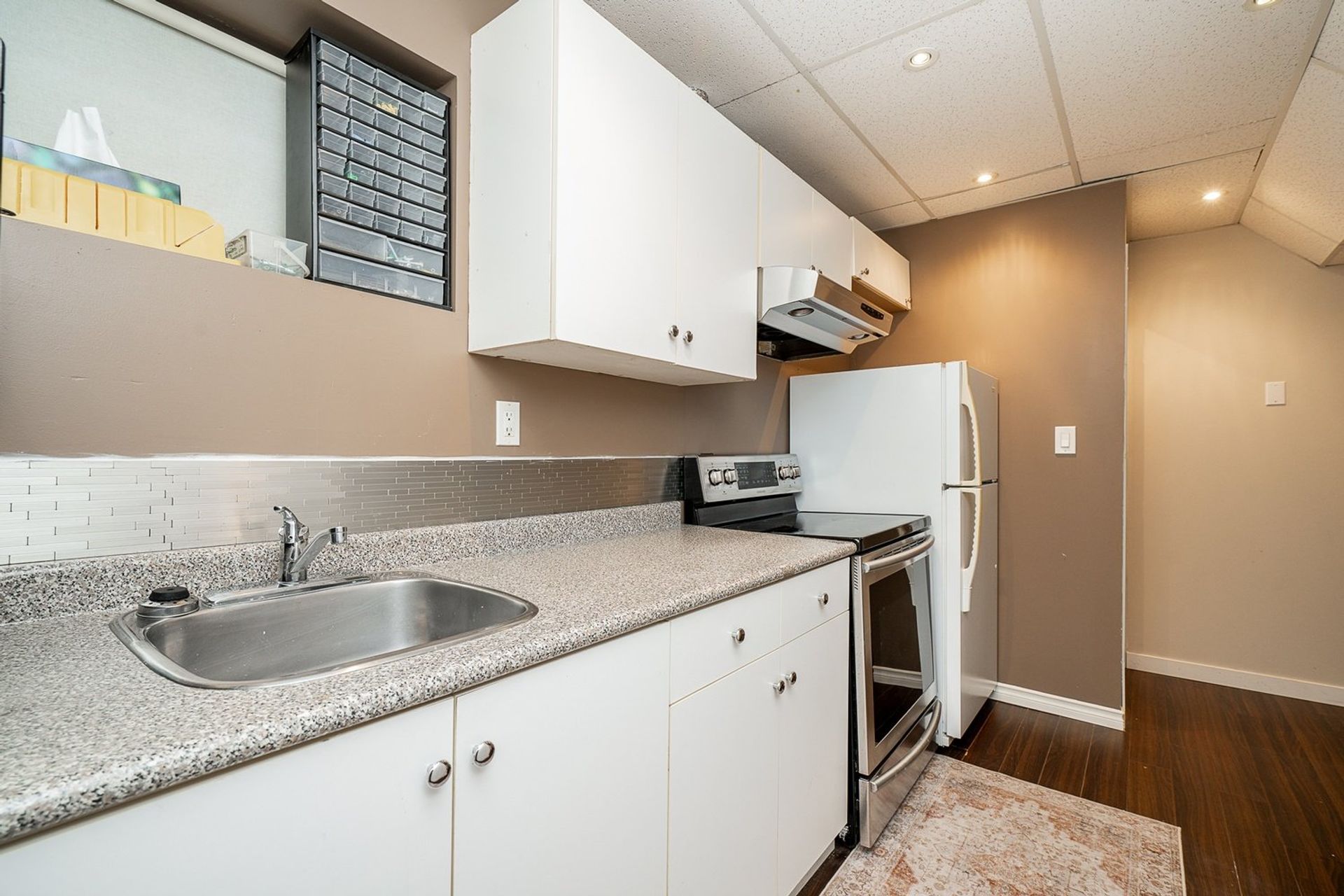 There is a studio in-law suite on the lower level: the entire basement has been freshly painted. In the suite there is a renovated spacious three-piece bathroom, large recreation room with new electric fireplace, a wrap-around under stair storage area, a dedicated space for laundry with new Electolux washer/dryer and new flooring, a kitchen, and a separate entrance out on to the home’s carport.