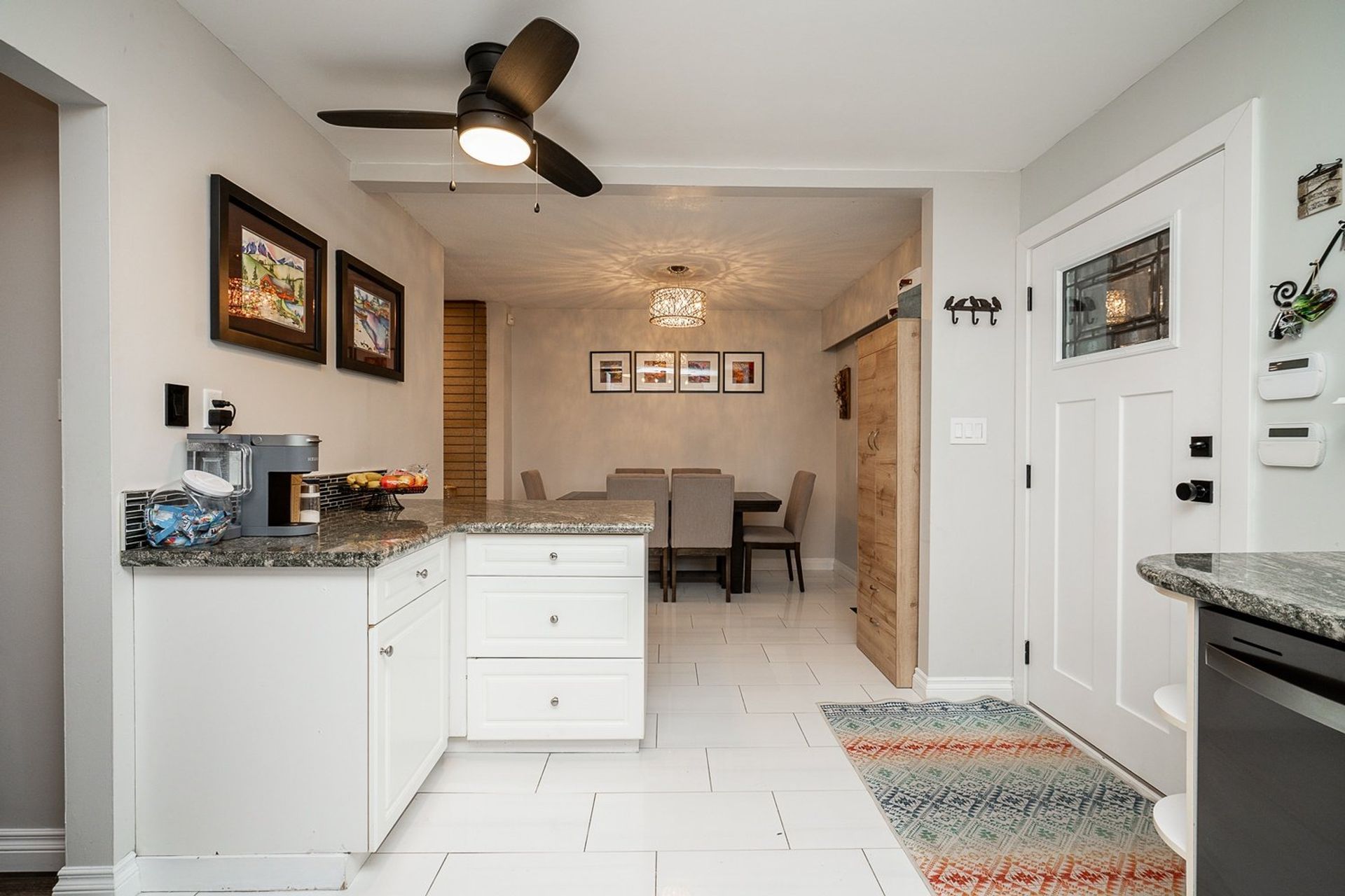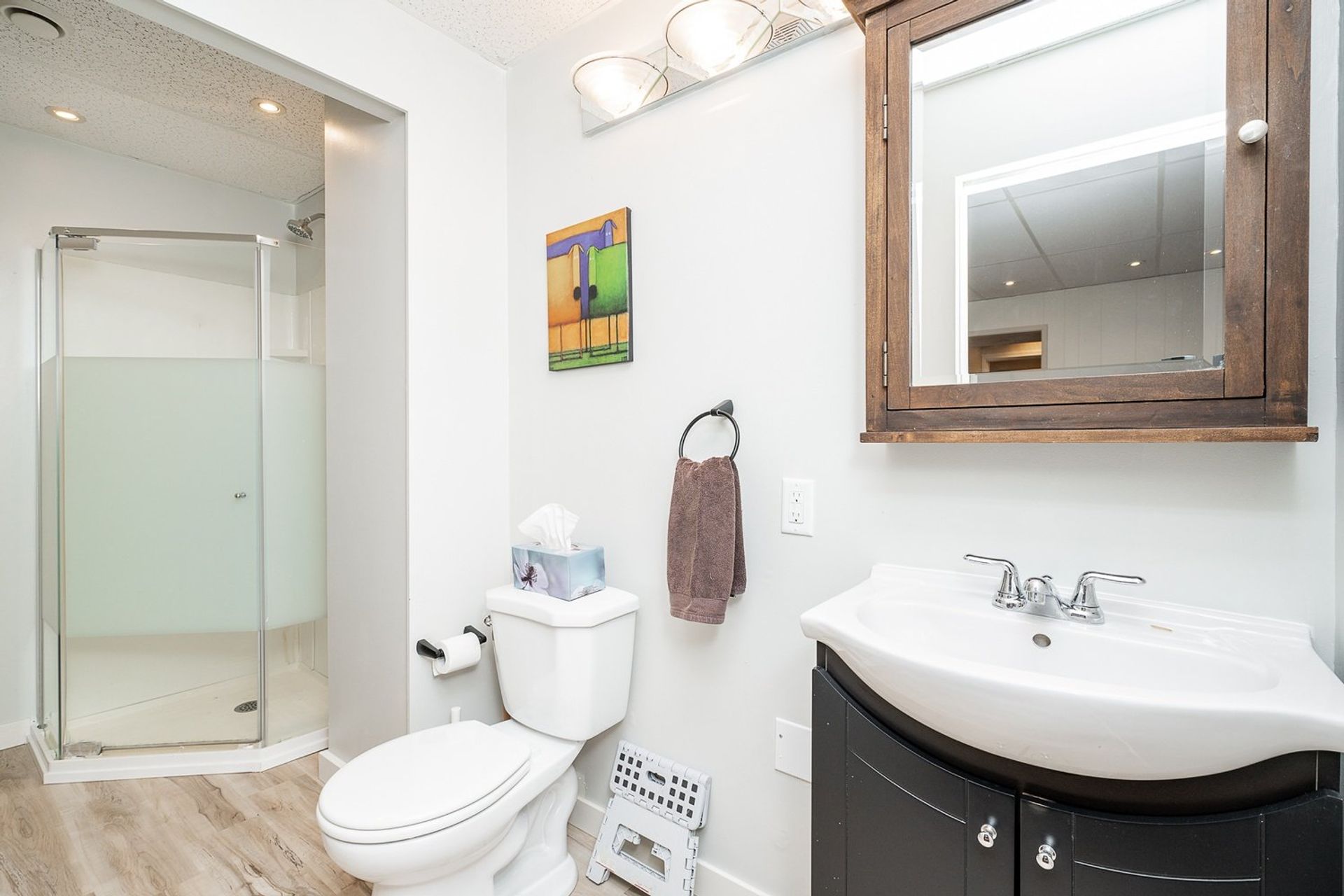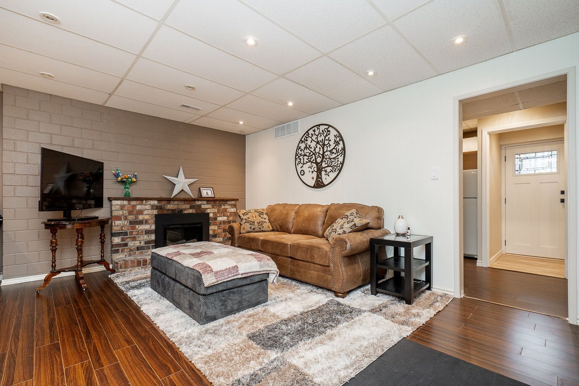 There is a studio in-law suite on the lower level: the entire basement has been freshly painted. In the suite there is a renovated spacious three-piece bathroom, large recreation room with new electric fireplace, a wrap-around under stair storage area, a dedicated space for laundry with new Electolux washer/dryer and new flooring, a kitchen, and a separate entrance out on to the home’s carport.