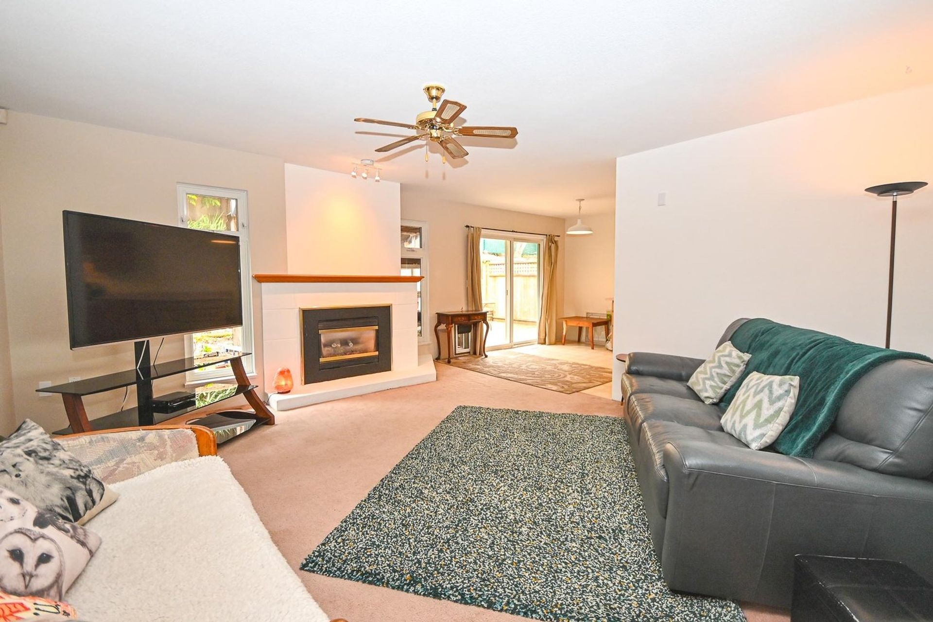 The kitchen has an induction stove, a large café style fridge, a standalone freezer, a full pantry cupboard, and an extra long prep area which bridges the eating area that has access on to the private back patio and fully fenced yard with custom pet grass. A family room with a gas fireplace completes the communal section of the main floor that, with a few creative design ideas, will be perfect for entertaining and large families looking for separation in proximity.