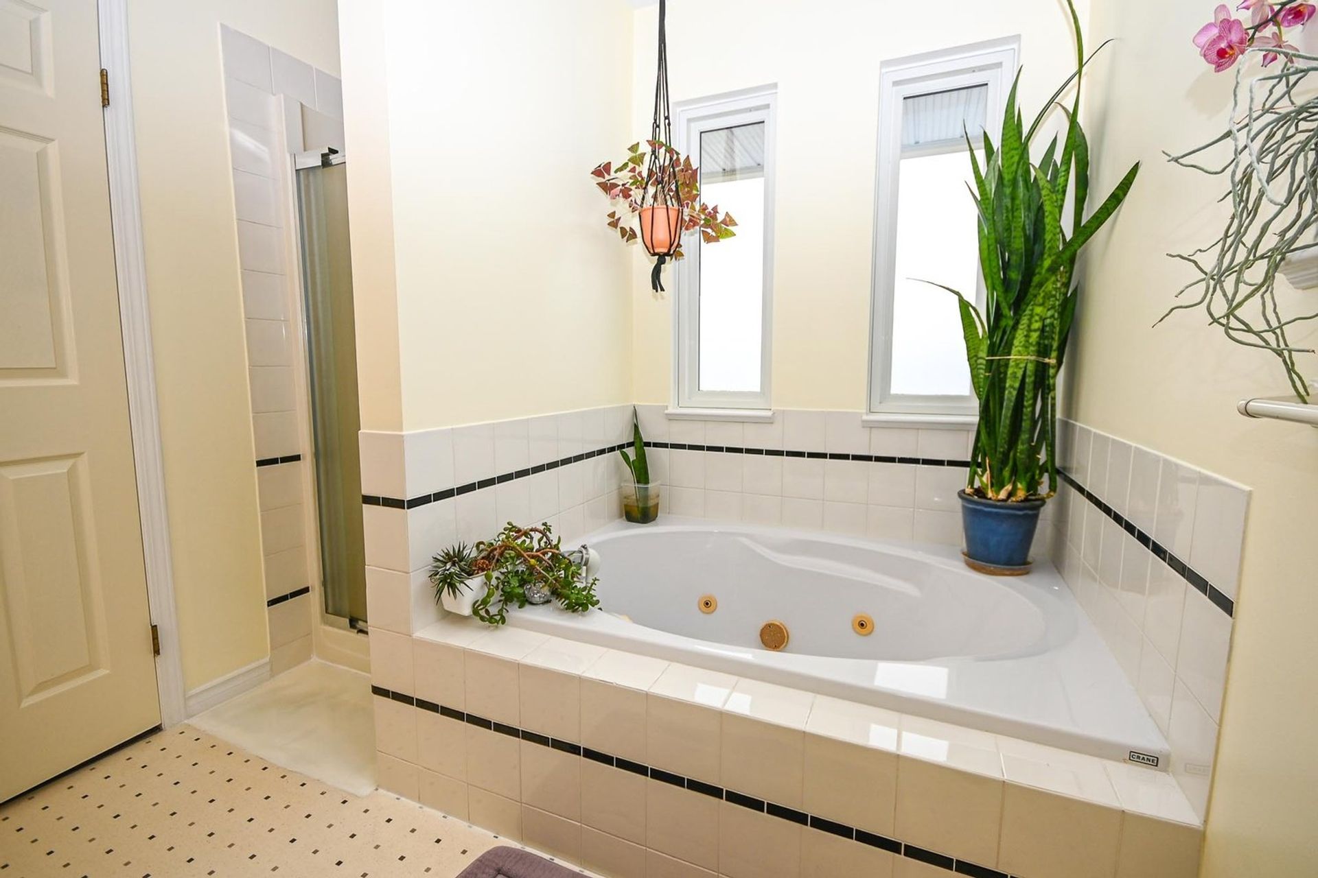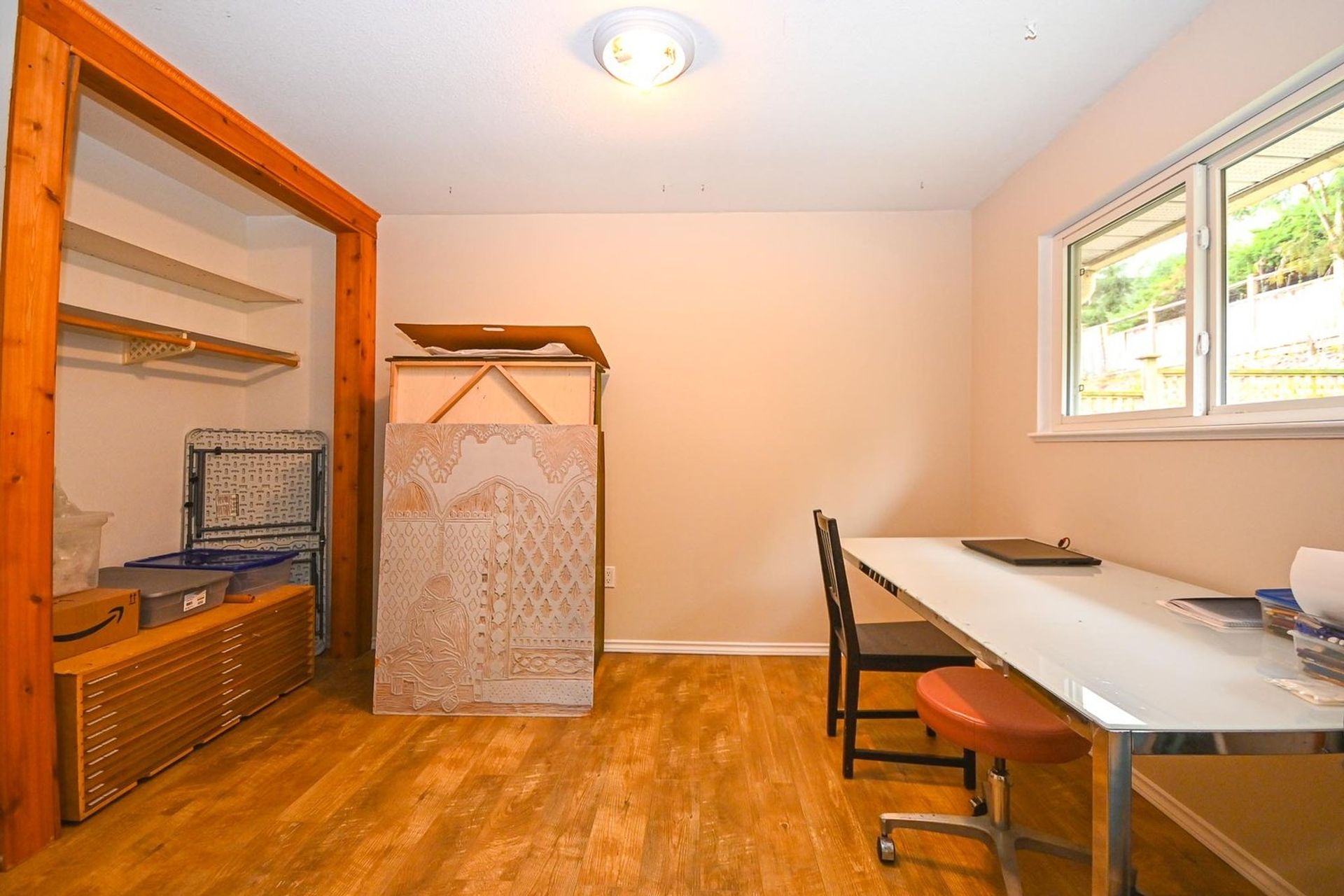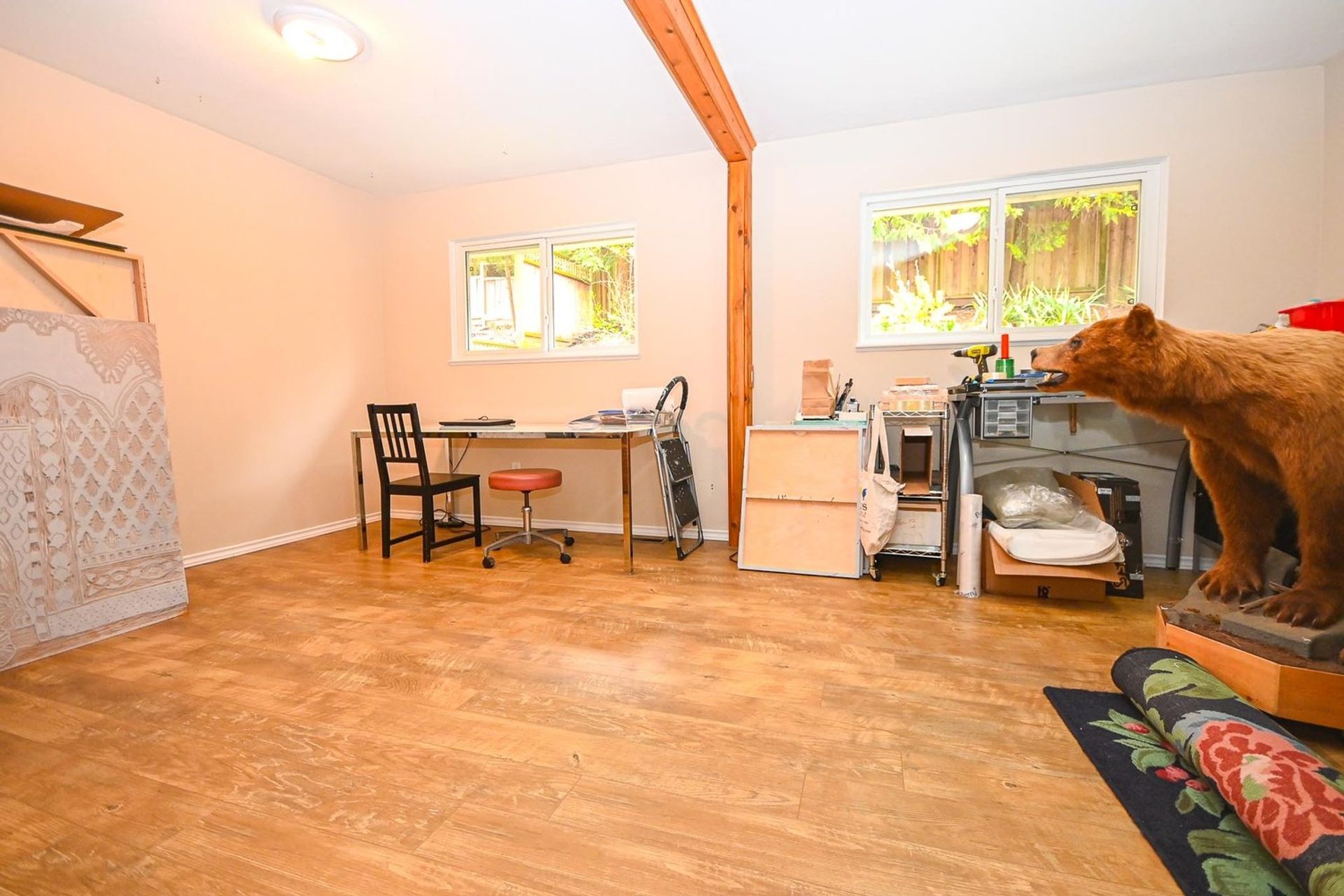 Currently there are two bedrooms on this level, however one which is currently used as an extra-large studio—with updated flooring—could easily be repartitioned into two separate rooms. The primary bedroom is palatial with French doors out on to the main deck, two closets, and ensuite with an executive style jetted tub and dedicated shower.