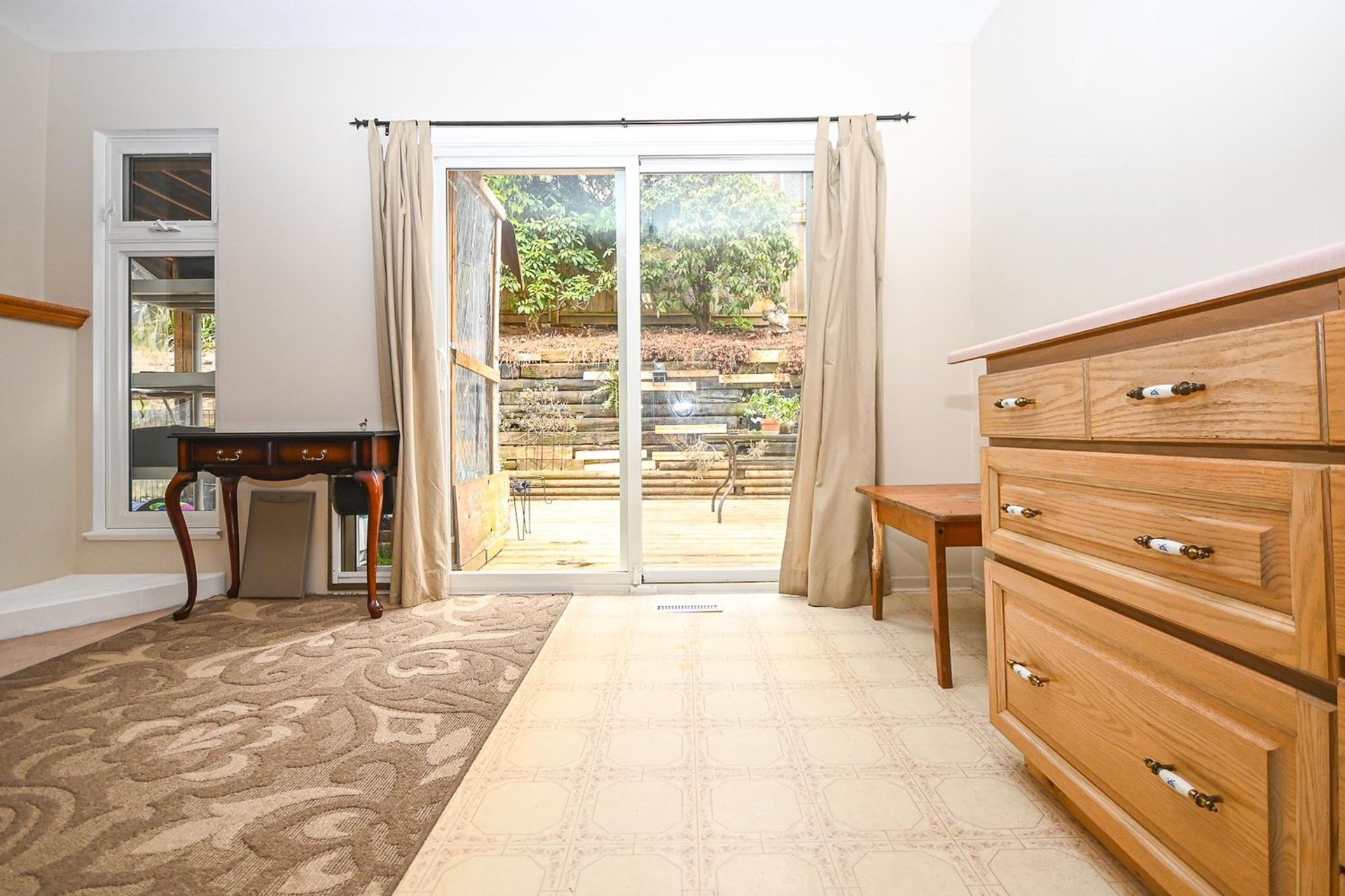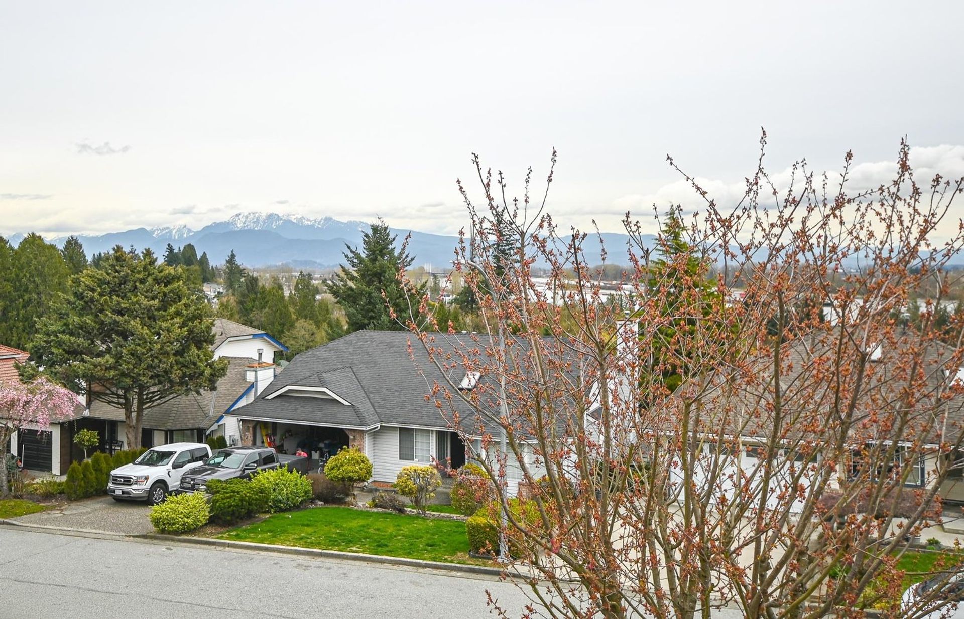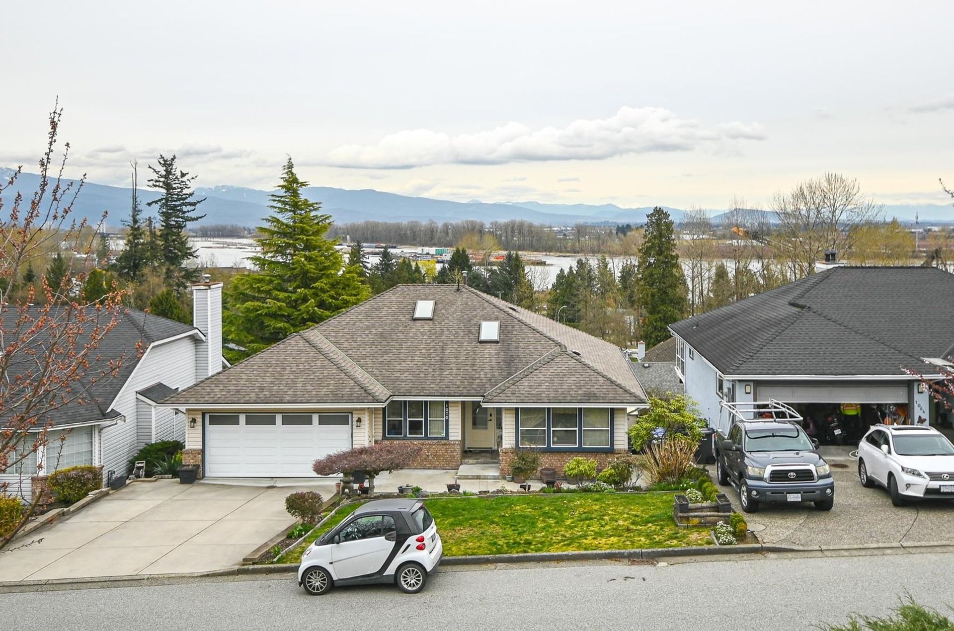 The main level of the home is perfect for a family, presenting potential buyers with a fairly open dining room, living room, family room, and eating area. Through a set of windows in a nook area in the living room there is both a mountain and Fraser River view as well as access to a large deck; the dining room adjoins the living room and shares the same view.