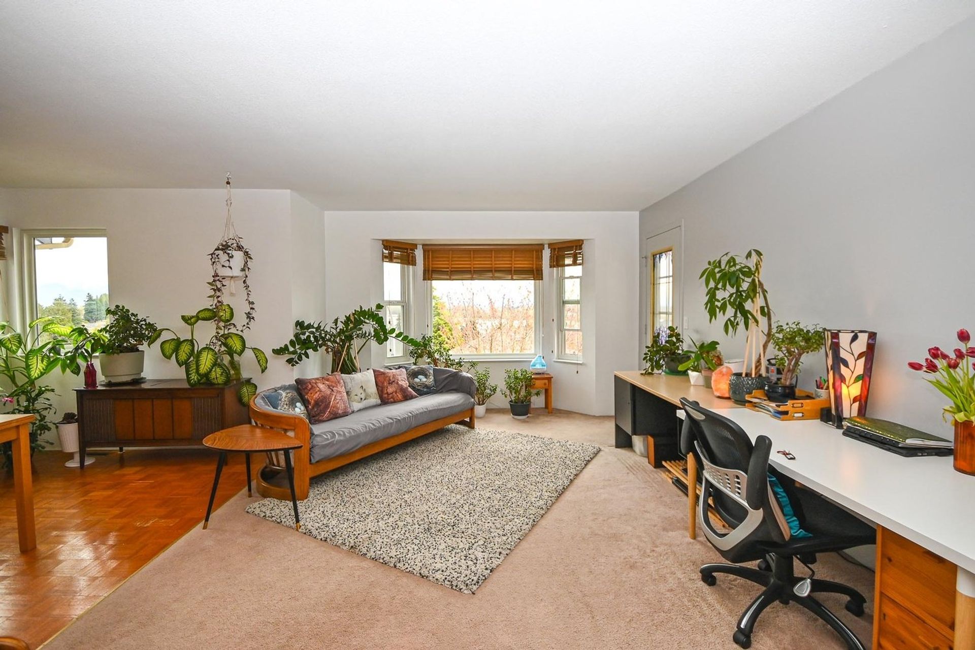 With an oversized two-bedroom suite you will have more than a small monthly mortgage helper. The entirety of the suite has updated flooring as well as triple paned windows; a large portion of the front facing windows on the main level were updated at the same time. Enter the suite on to an open living room and dining room area with abundant natural light looking over the home's front garden. The kitchen has Eurorite soft-close cabinets, updated counters, and a dishwasher. Two bedrooms (one without a window), a four piece bathroom, a large bonus flex room, a spacious storage room, and a full sized washer/dryer complete this rental ready suite.