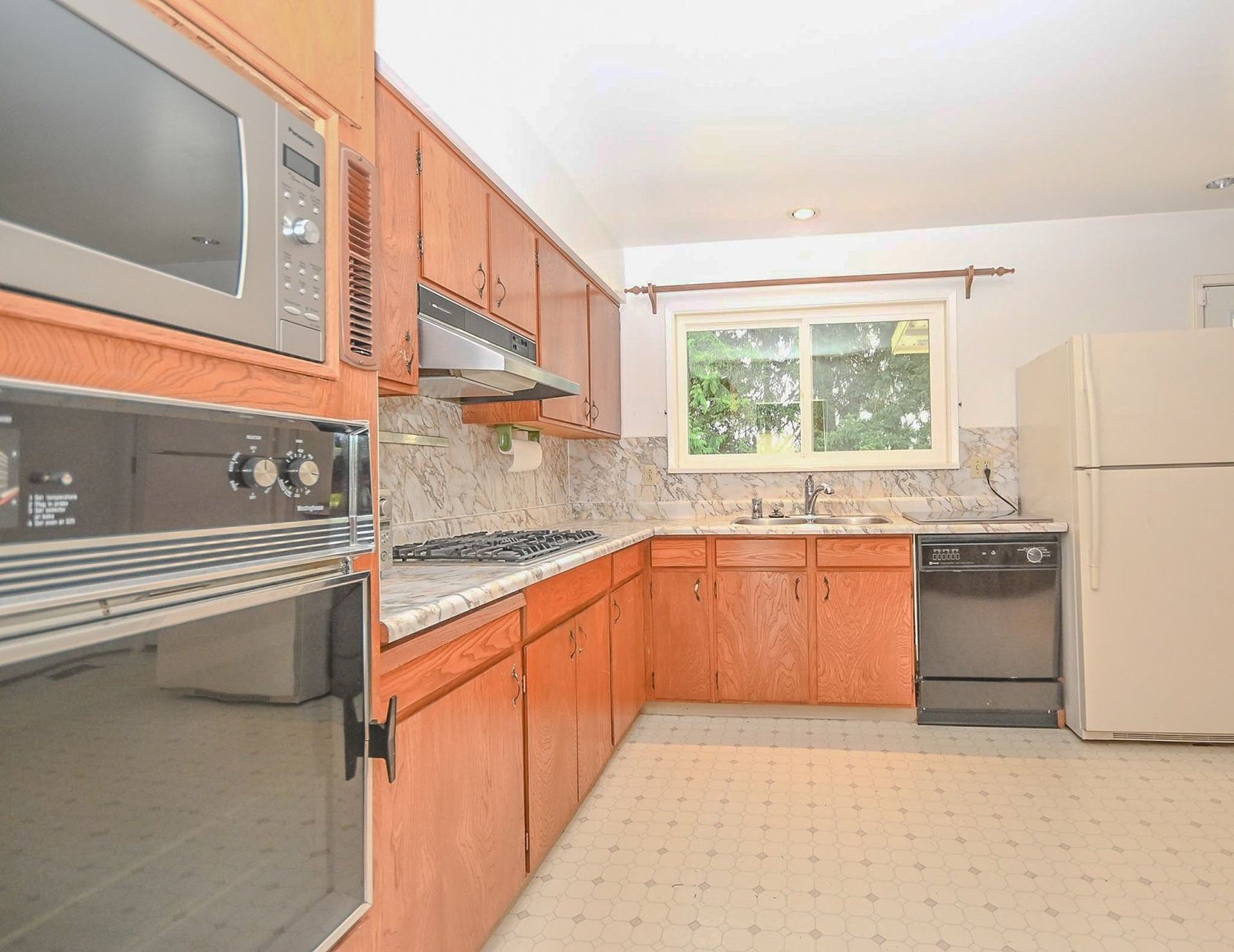 The main level of this home has three bedrooms & two washrooms. The kitchen has a natural gas hookup, the living room is flush with natural light from an oversized window overlooking the front yard, and the formal dining room has access to an updated covered deck which provides stairs down to the home's large backyard.