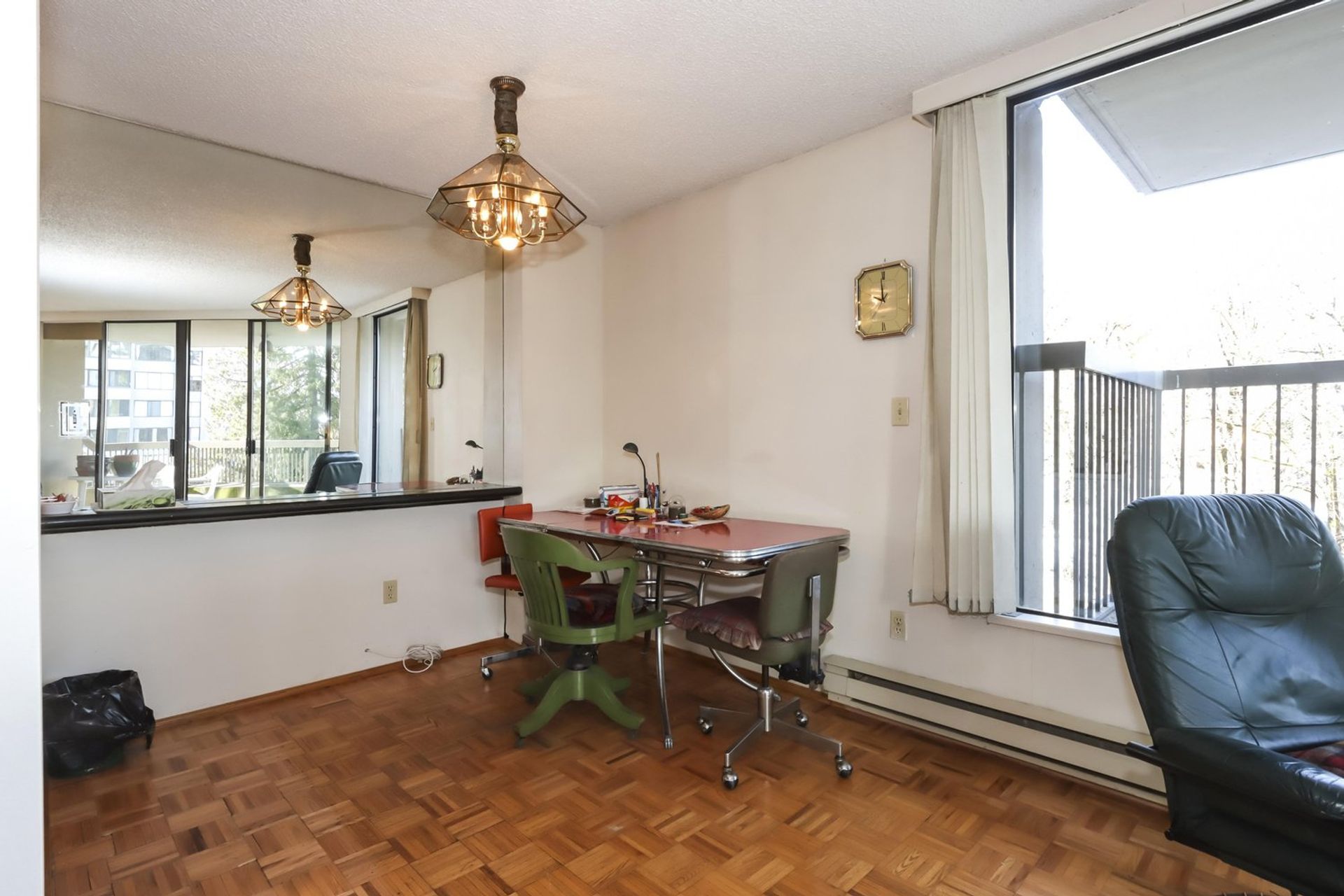 Laundry for this unit is located a few steps down the hall, one parking stall, and a storage locker are included. The building features a lovely outdoor pool just waiting for the upcoming spring season, and an oversized private tennis court nestled amongst trees and greenery.
