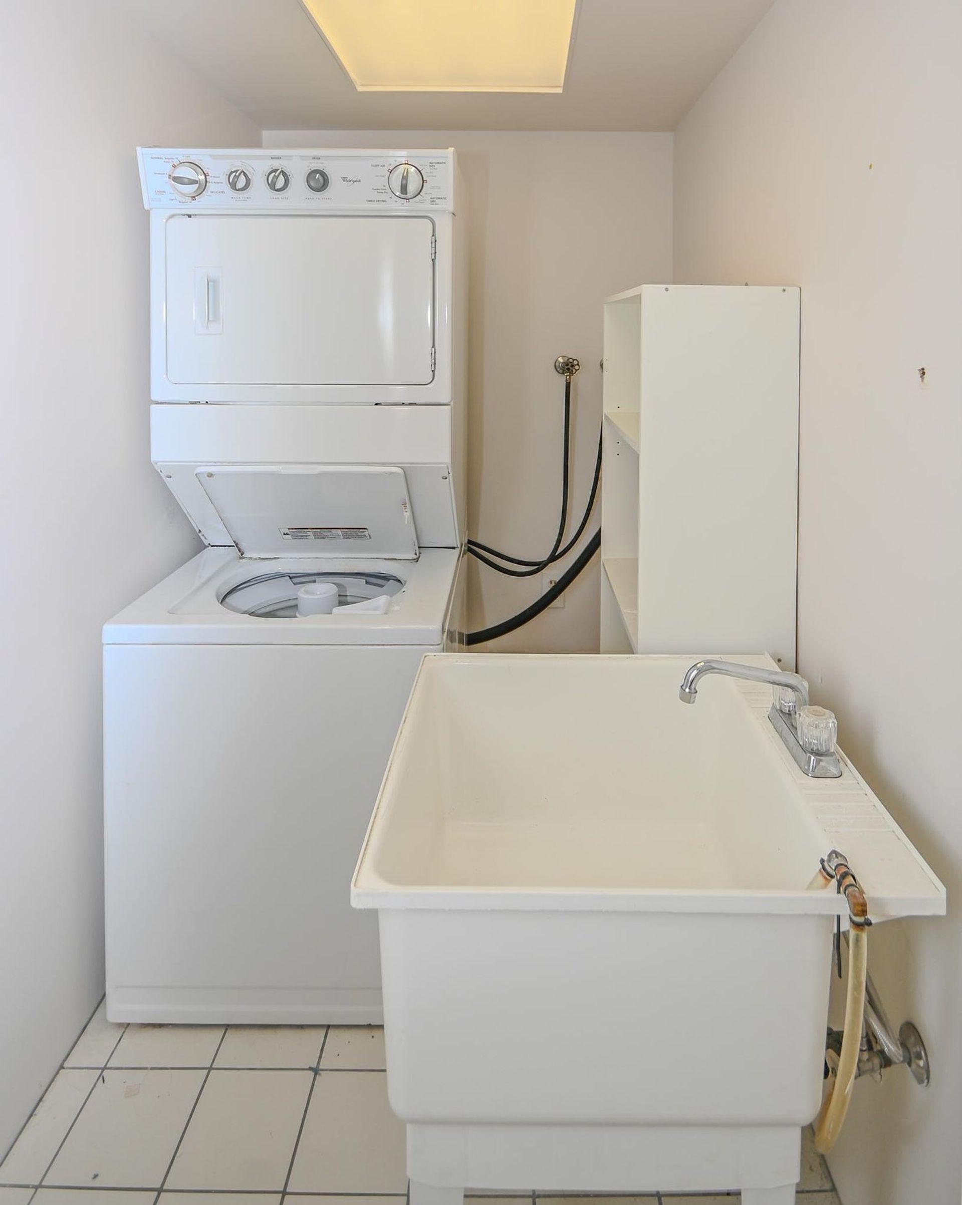 Shared laundry is conveniently located on the lower level in a dedicated area with a wash sink and extra storage. Off the foyer, a massive 456-square-foot unfinished room presents endless possibilities—a recreation room, hobby space, home gym, or dream games room. The choice is yours!