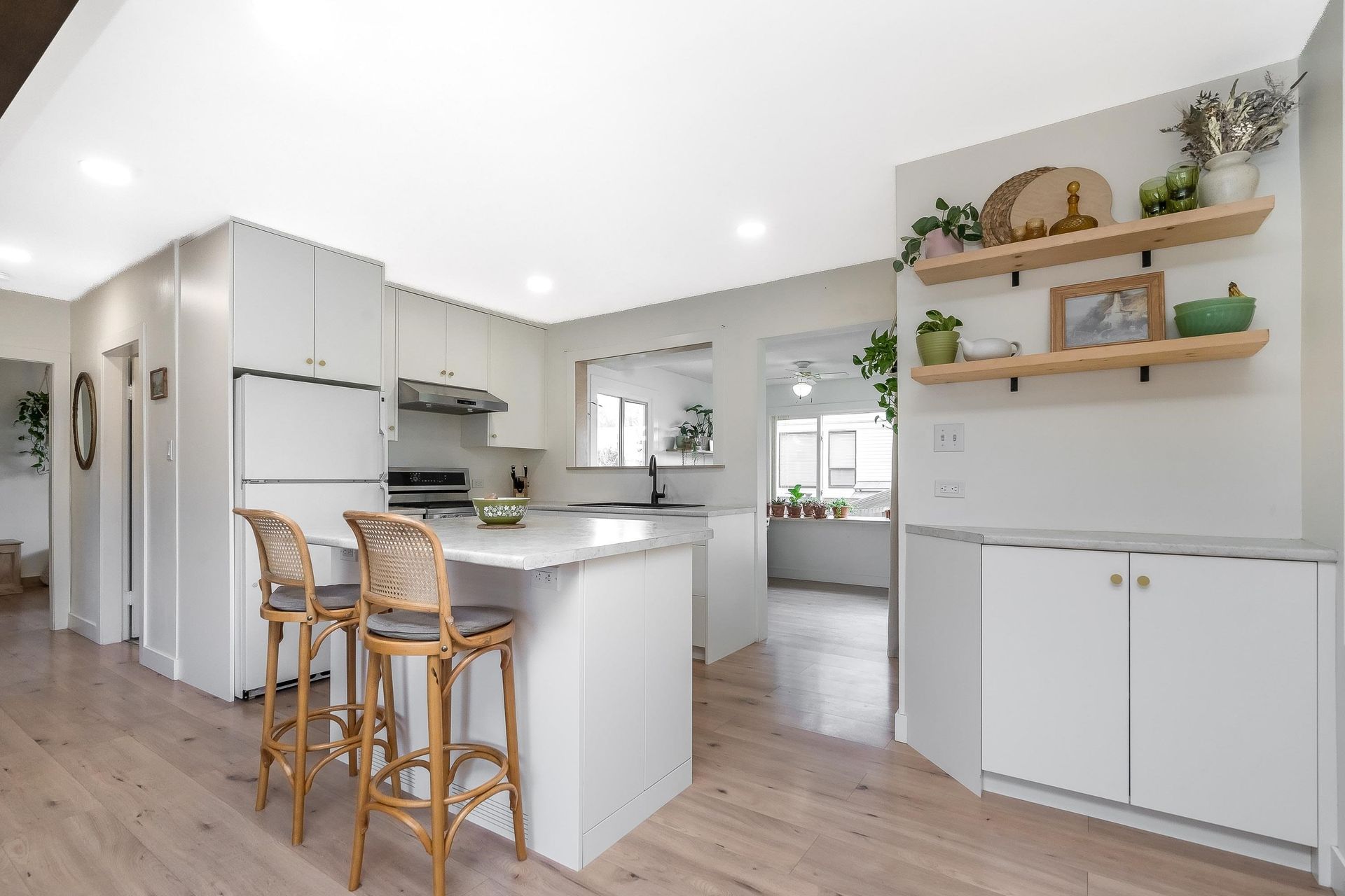 Upgrading out of a Condo or Townhome and into a House with your own yard? This little gem, is the one for you! Enter into an open concept living room/kitchen area with a bonus flex/dining room area off the kitchen. Drenched in an abundance of natural light this partially renovated home is wonderful for entertaining and hosting family gatherings. 2 Large bedrooms & a 4 piece bath. The basement is currently used as a hobby room with tons of added storage and a huge laundry area. Lots of Room to expand and add bedrooms. This home has New plumbing throughout, New Floors, Custom Cabinets, Heat Pump/AC, New Furnace, Hot Water Tank 2022/2023. Back yard is completely secure and newly fenced (2021) and has a shed/storage for all of your toys. Great Central Location and Excellent Value!