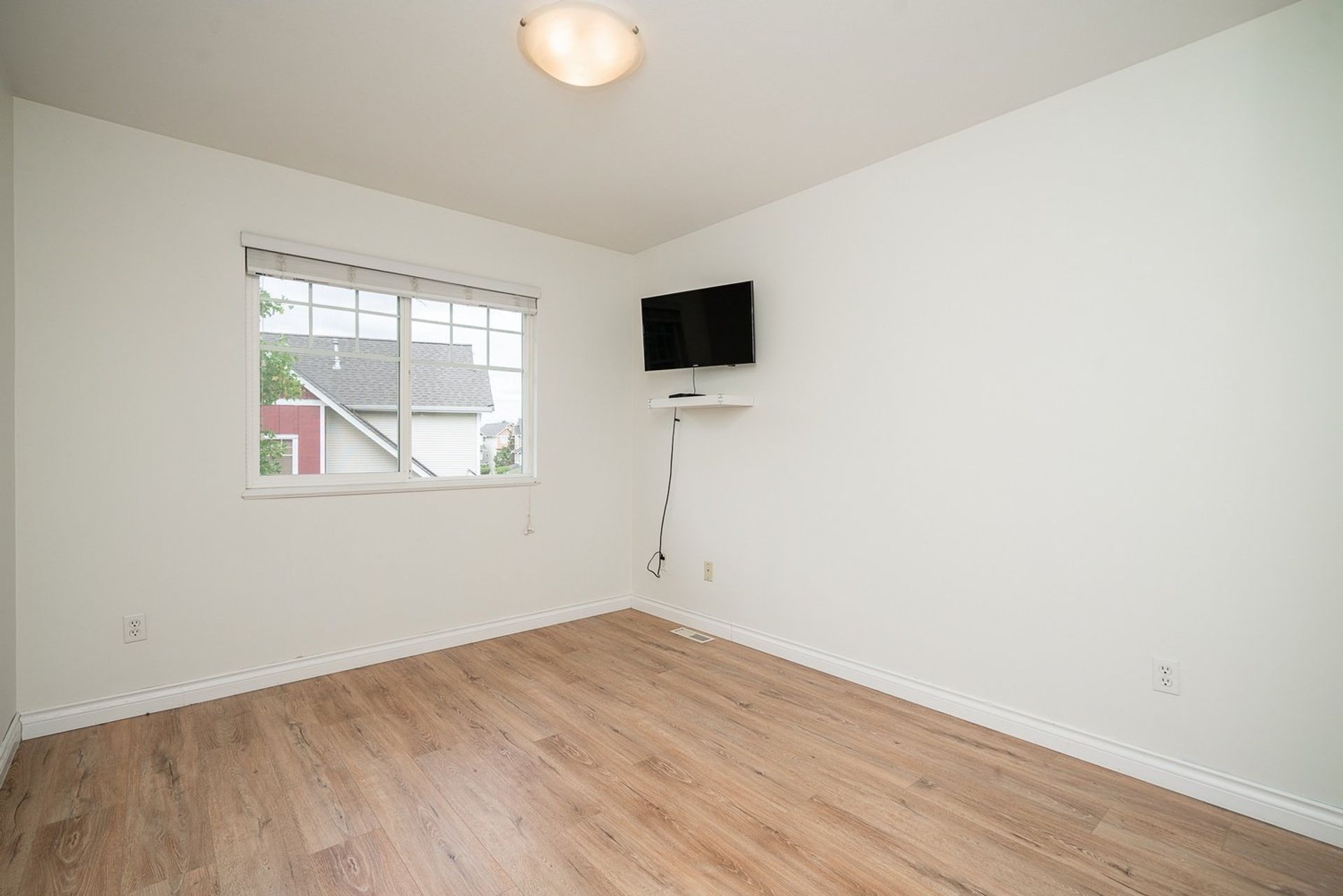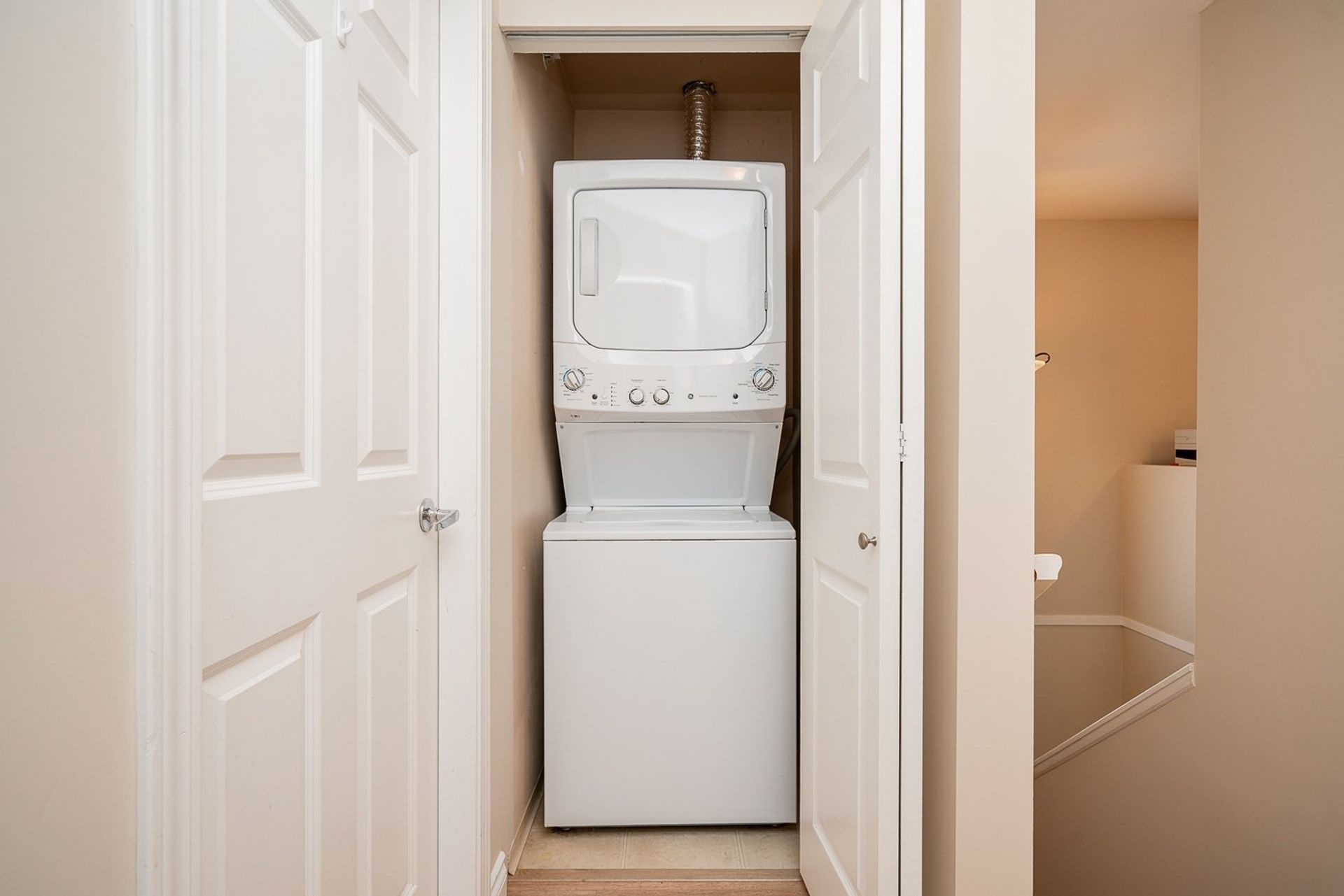 The home’s lower level is fully above ground and a rare find in townhouse living. It includes a fourth bedroom, a spacious recreation room, a three-piece bathroom, yard access, and a separate entrance—making it ideal for older children seeking independence or an in-law suite. Sliding glass doors open onto the private backyard, where rustling trees, a grassy area, and a convenient storage shed (staying) create a space that is both peaceful and practical. You’ll also find clever under-stair storage and direct access to the two-car garage.