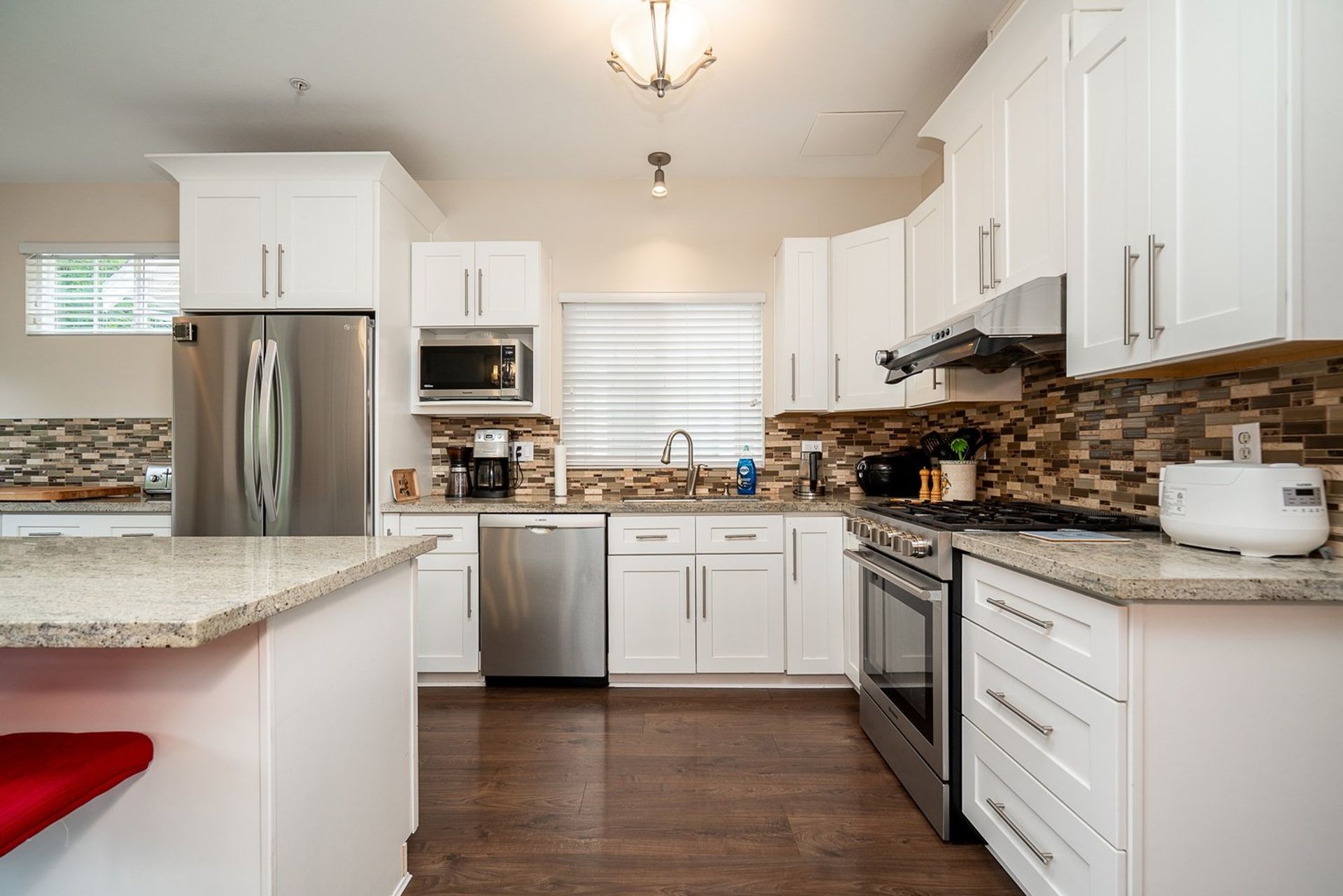 Both the home and complex have been consistently upgraded. Interior improvements include full repainting (including ceilings on the main floor and primary bedroom), new flooring on the upper level and stairs, and a new furnace and hot water tank (2019). The complex itself has seen significant updates: new roofs and gutters (2019–2020), complete exterior painting (2021), and newly replaced fencing (2020–2025).