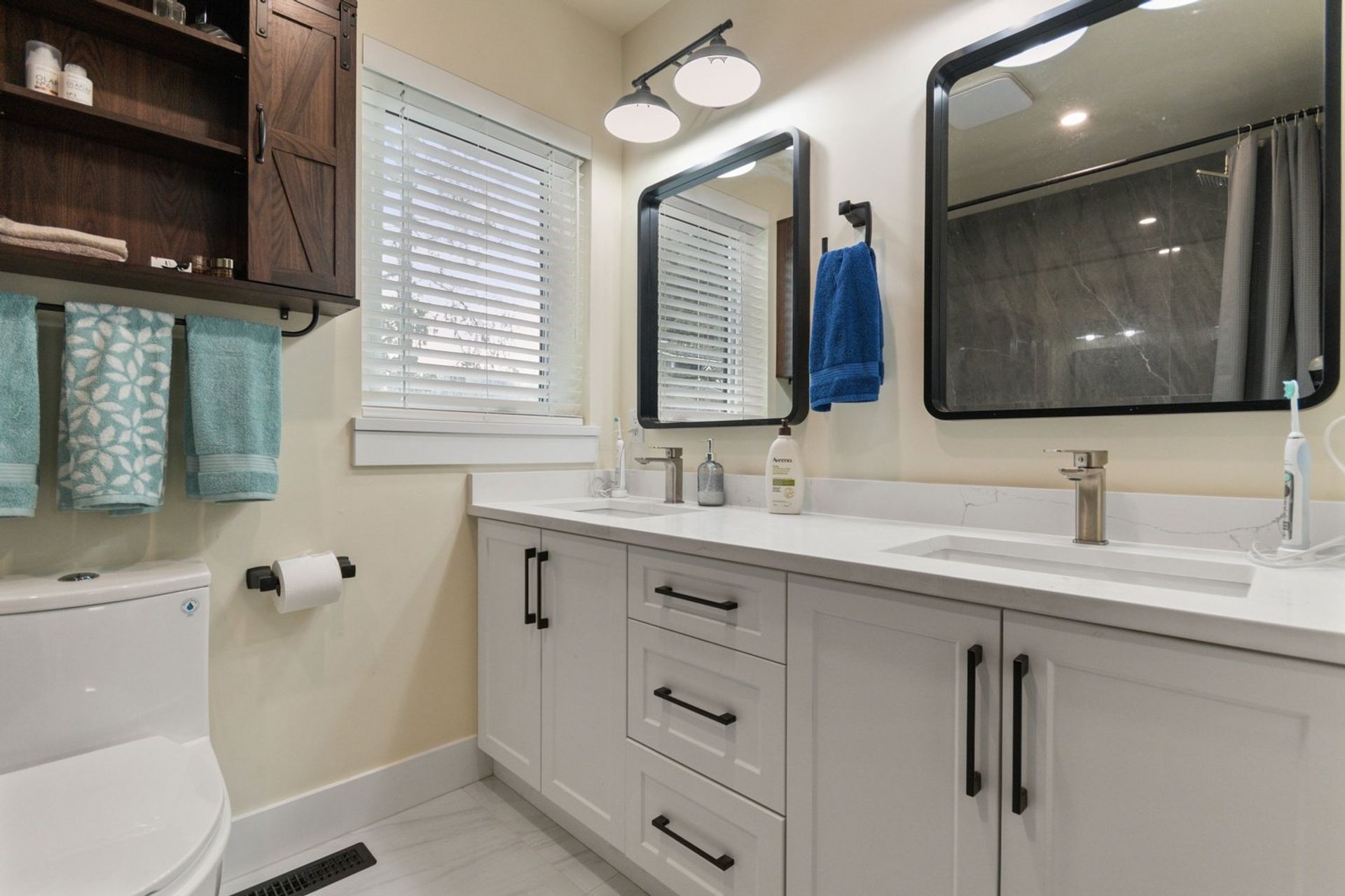 The upper floor features a loft primary bedroom with a large walk-in closet and a four-piece ensuite with two sinks, and a beautifully tiled walk-in rain shower. A retreated unto itself.
