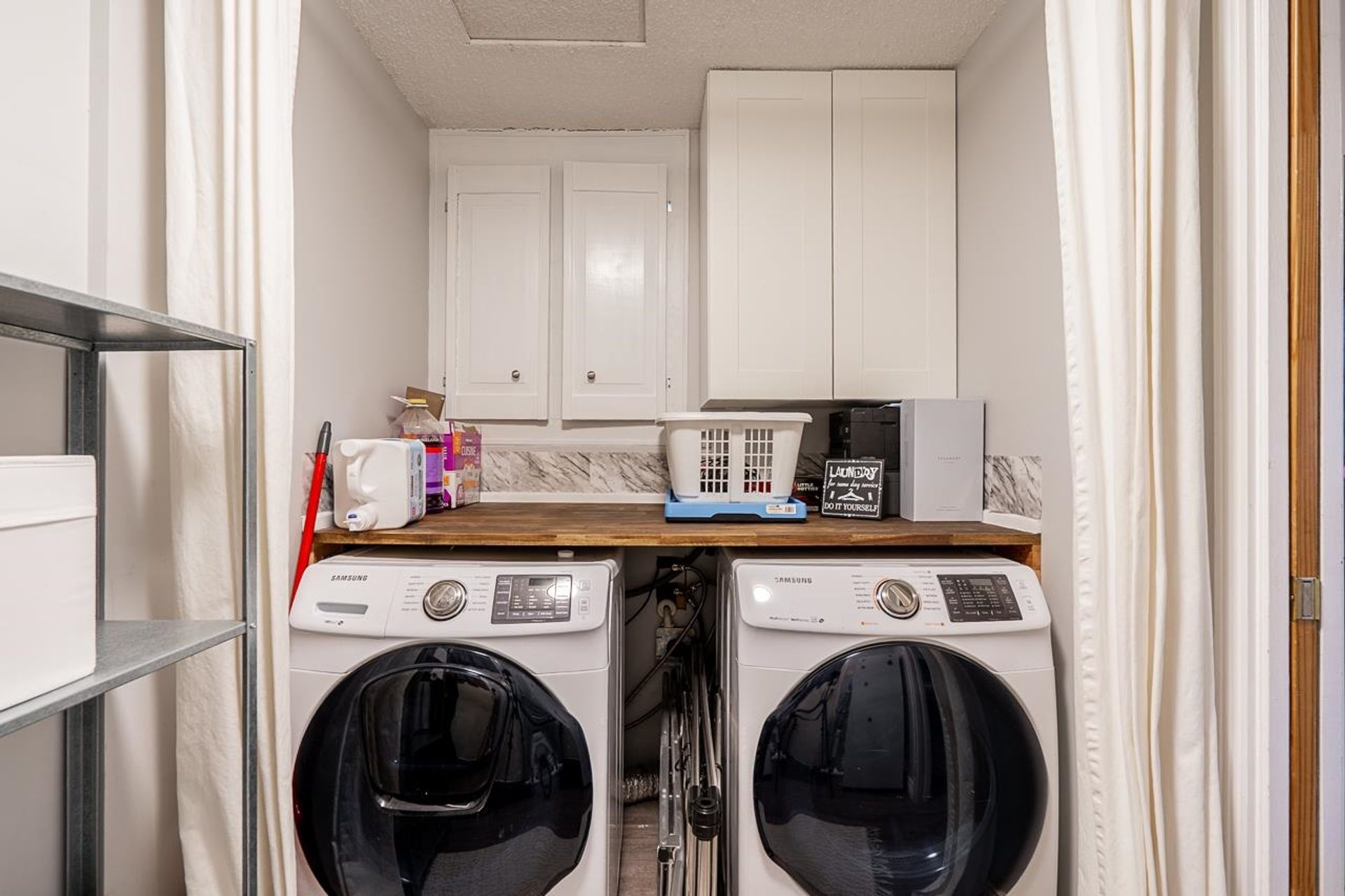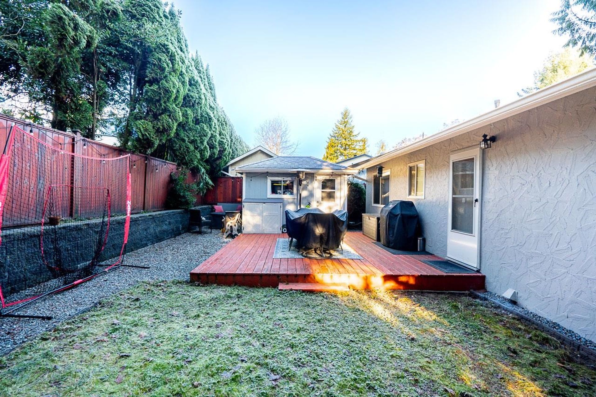 Lovingly maintained rancher tucked away on a quiet street. 3bed/2bath w/ fully fenced yard, dedicated shed, 281sqft deck & park view. Renovated bright modern kitchen w/ abundant custom soft-close cabinets, stainless steel appliances, & backsplash; open to dining room on one side & dedicated laundry area w/ front loading Samsung washer/dryer & backyard access on the other. Bright living room w/ oversized window for natural light, updated electric fireplace & pot lights installed same time as new vinyl flooring (uniform throughout home). Primary bedroom w/ wainscotting & 4pc updated ensuite w/ jetted soaker tub. 2 additional bedrooms & 4pc main bathroom. Private backyard w/ new retaining wall & cedar fence stained to match deck. Walking distance to schools/parks./trails.